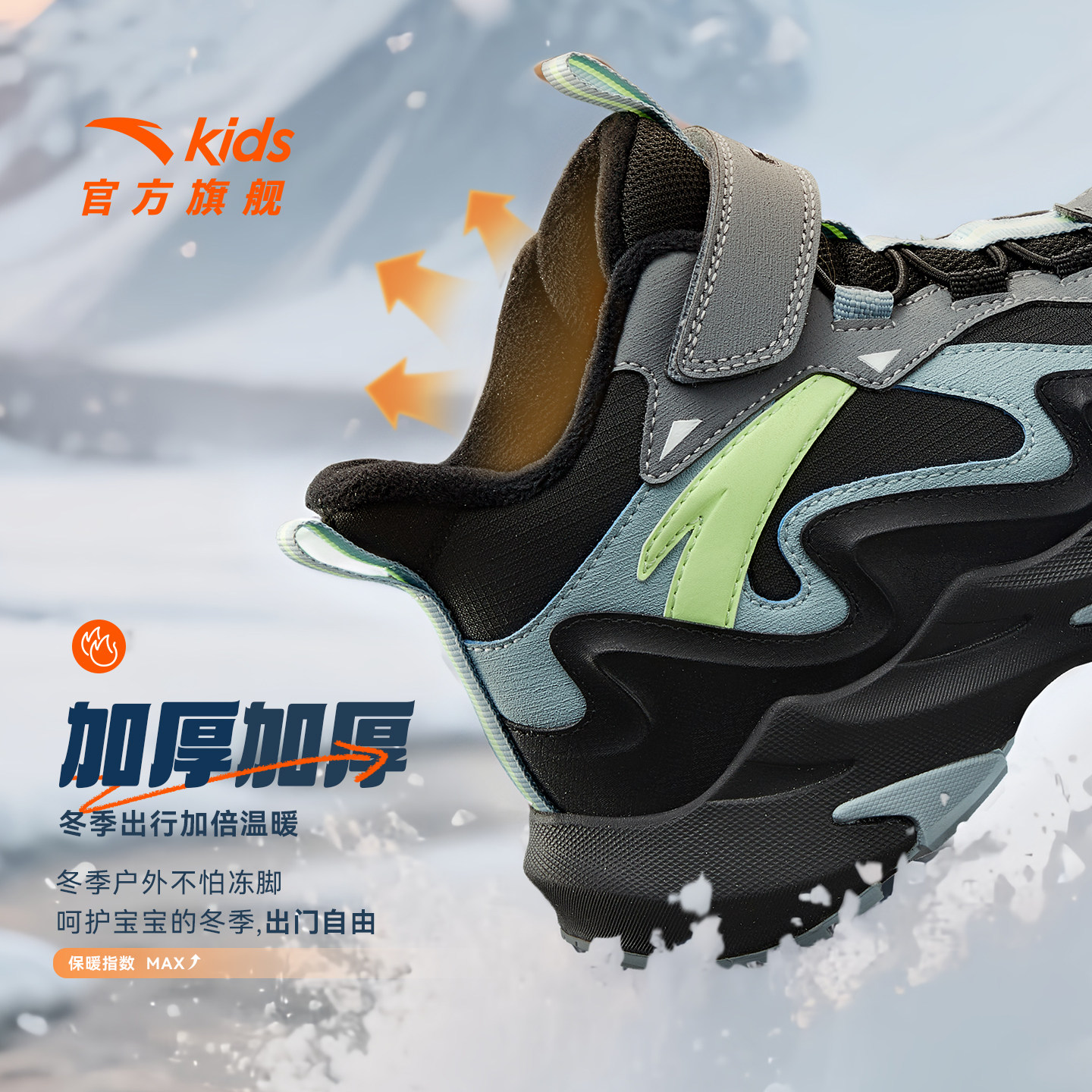 川尘3|鸿星尔克童鞋冬季加绒男中大童鞋子保暖加厚二棉休闲运动鞋