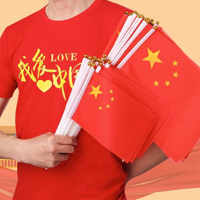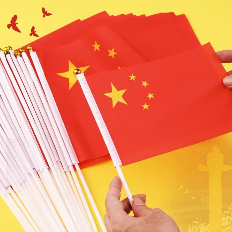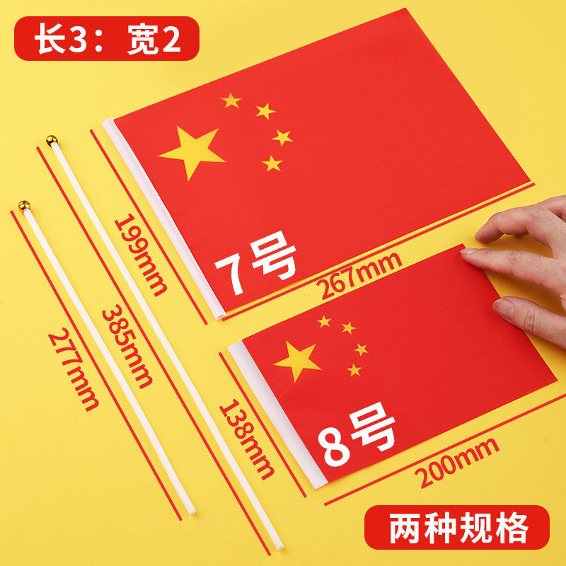 国庆节小红旗手摇红旗手持小号8号旗子中秋小型五星红旗户外装饰品手拿道具批发手挥旗帜队旗7号带杆贴摆件