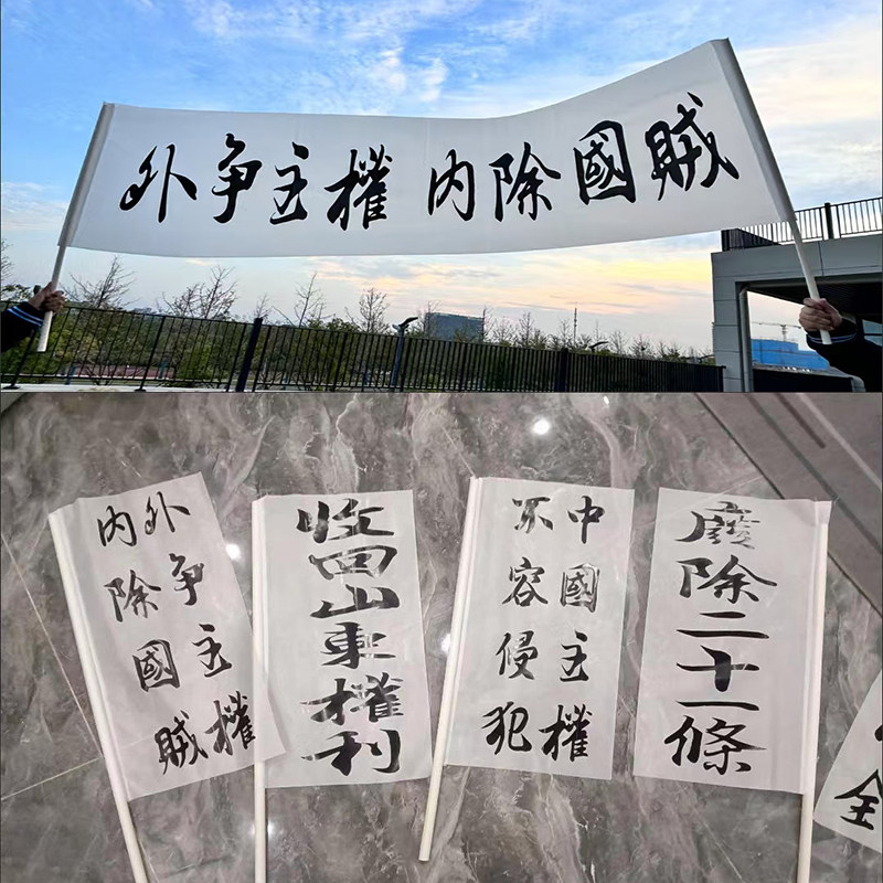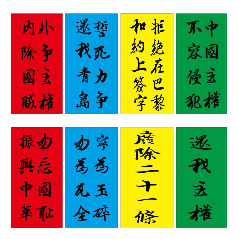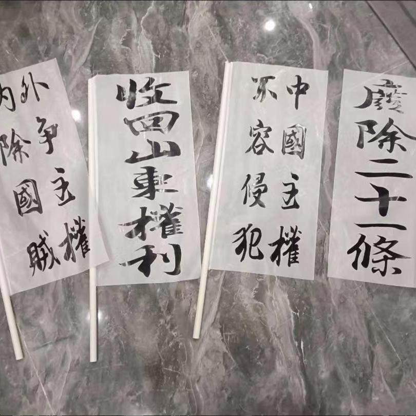 五四运动横幅白色条幅小竖旗白布黑字舞台话剧彩色手拿道具小旗帜