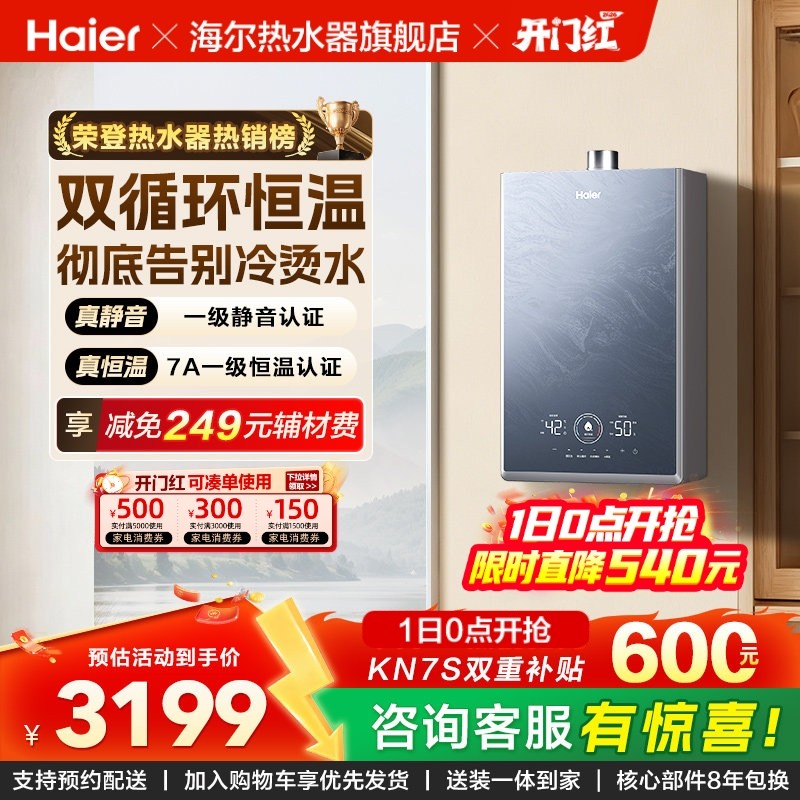 海尔燃气款热水器KN7S天然气家用16升密闭稳燃舱双循环零冷水