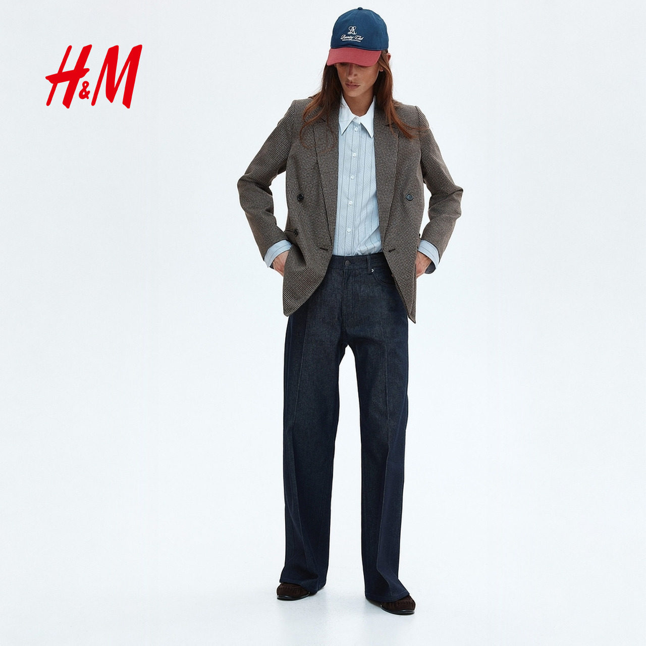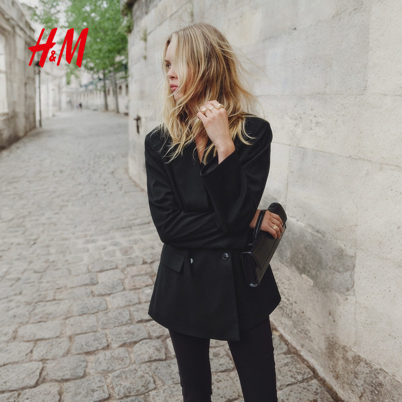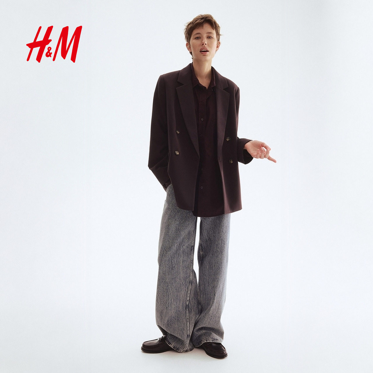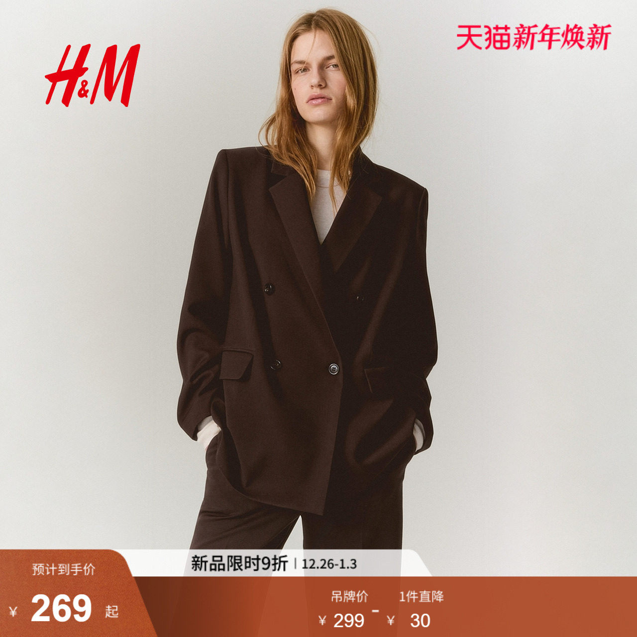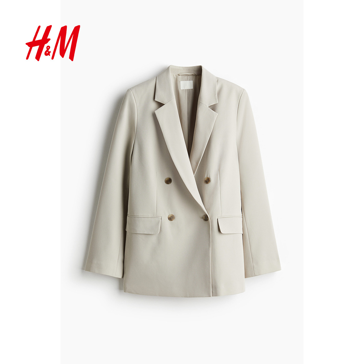 HM女装西装冬季通勤质感学院风双排扣平驳领宽松西服外套1232584