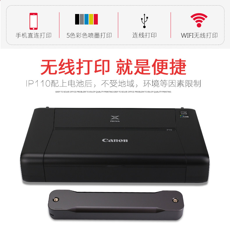 佳能IP110彩色照片A4车载无线手机wifi移动办公手提便携式打印机