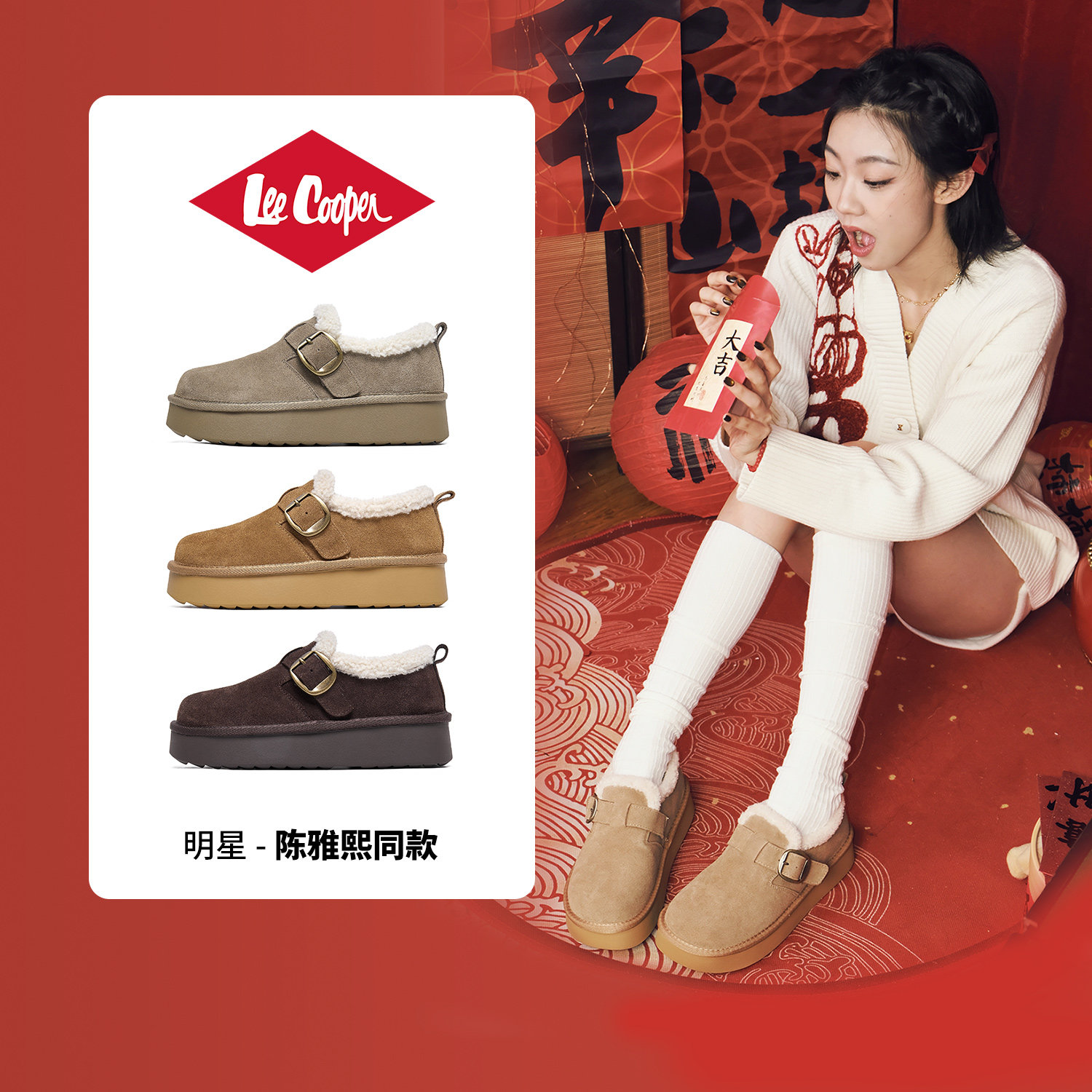 Lee Cooper时尚雪地靴女款2025新款冬季加绒保暖绒面棉鞋增高女鞋