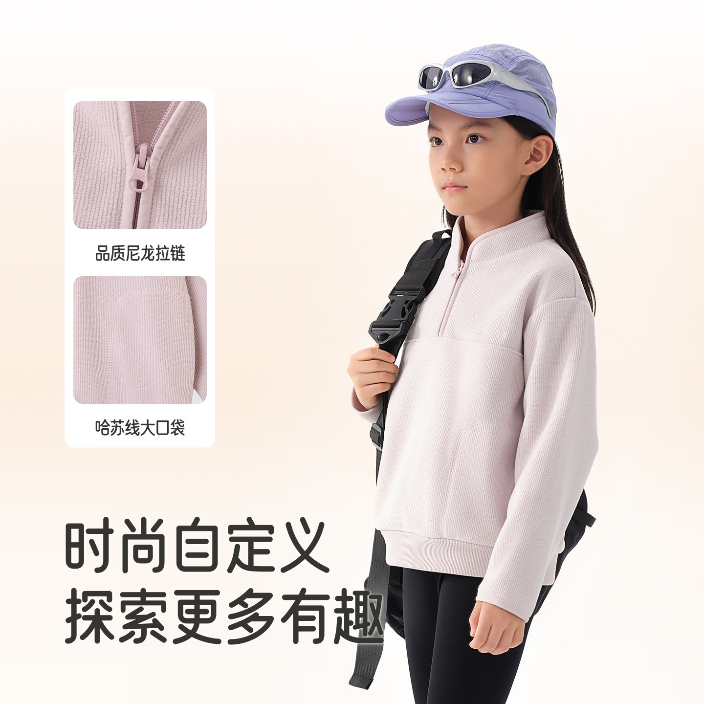 英氏女童半高领卫衣秋冬绒衫儿童纯色百搭休闲针织上衣保暖简约