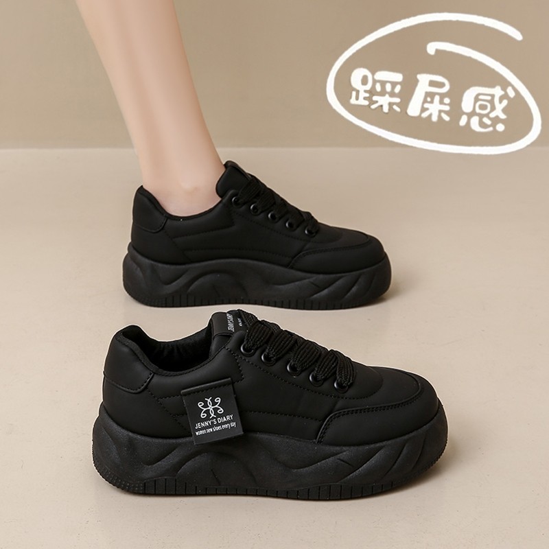 【明星同款】Wander around春秋款黑色厚底增高休闲板鞋男女同款