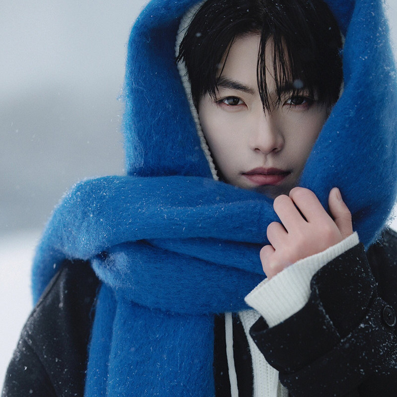 雪花双面针织围巾女秋冬季韩系氛围感加厚保暖高级感围脖复古披肩