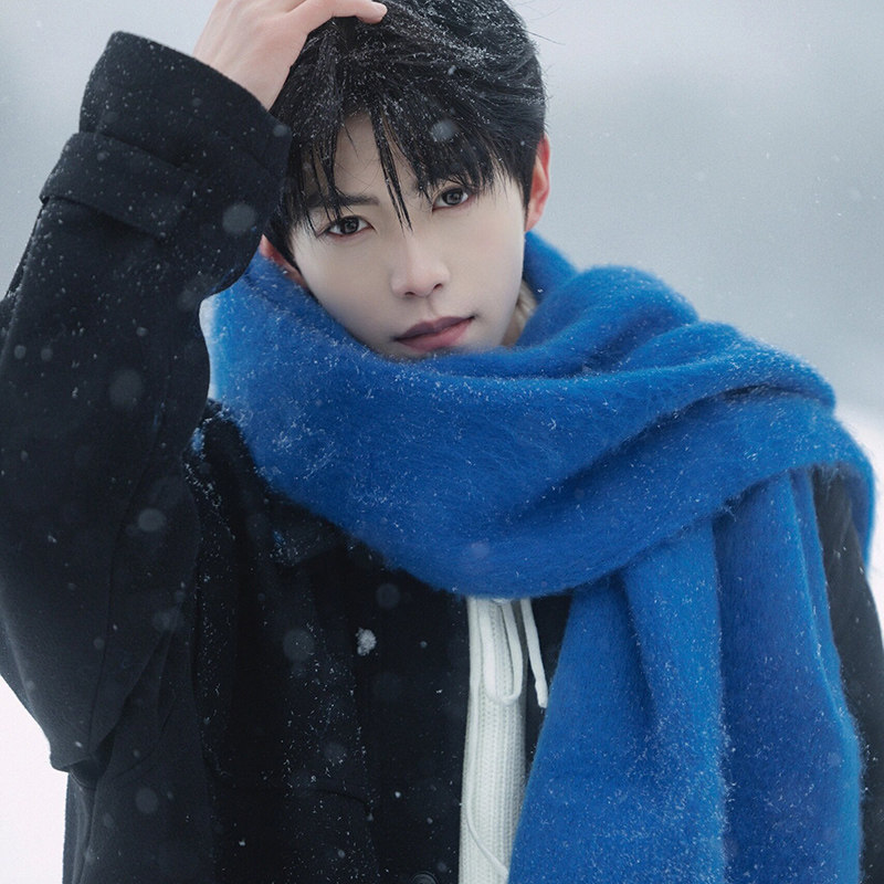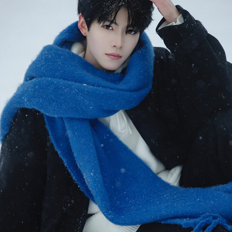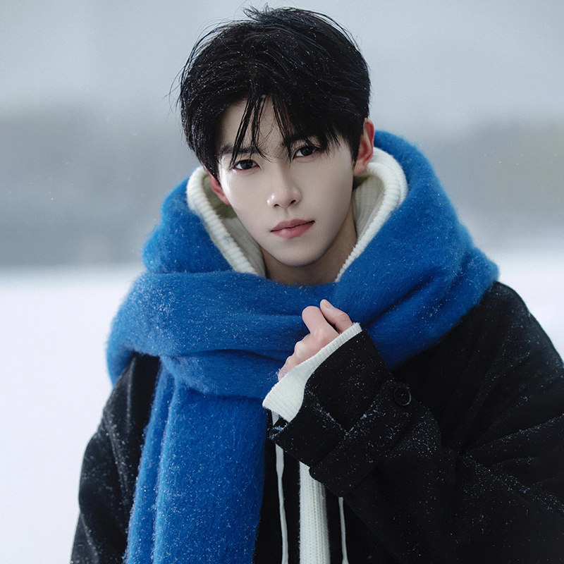 蓝色保暖围巾高级感2025男冬季加厚时尚百搭披肩针织围脖女生氛围