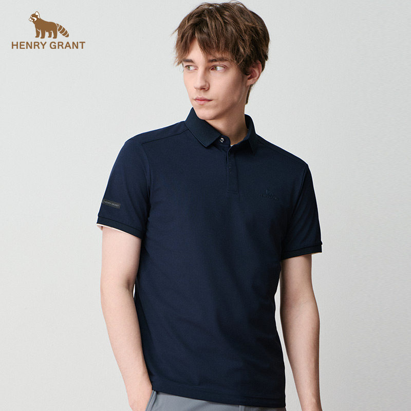 亨利格兰小熊猫夏季新品 男士运动休闲轻薄纯色polo衫百搭短袖t恤