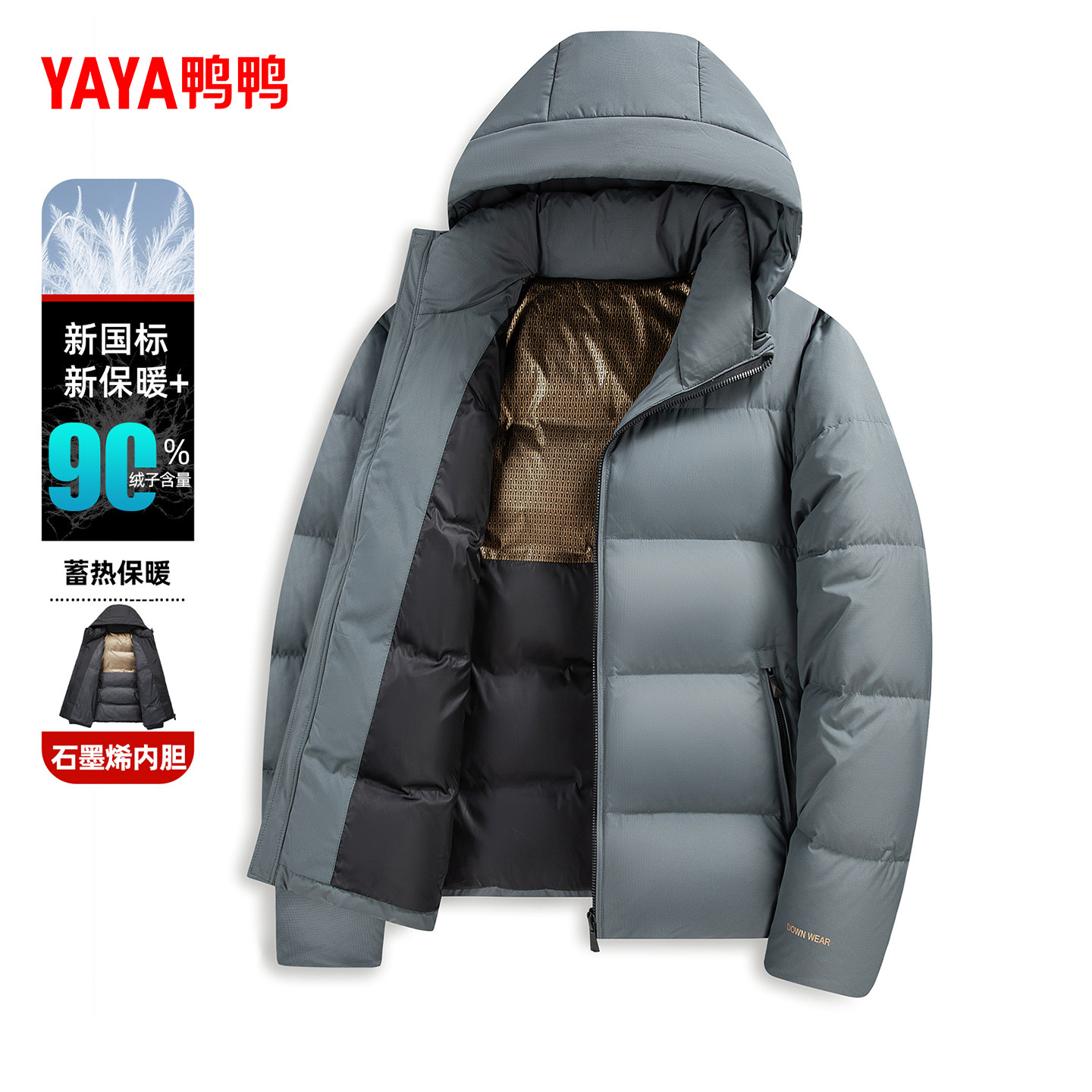 鸭鸭轻薄羽绒服男士2025年秋冬反季短款保暖休闲时尚连帽鸭绒外套