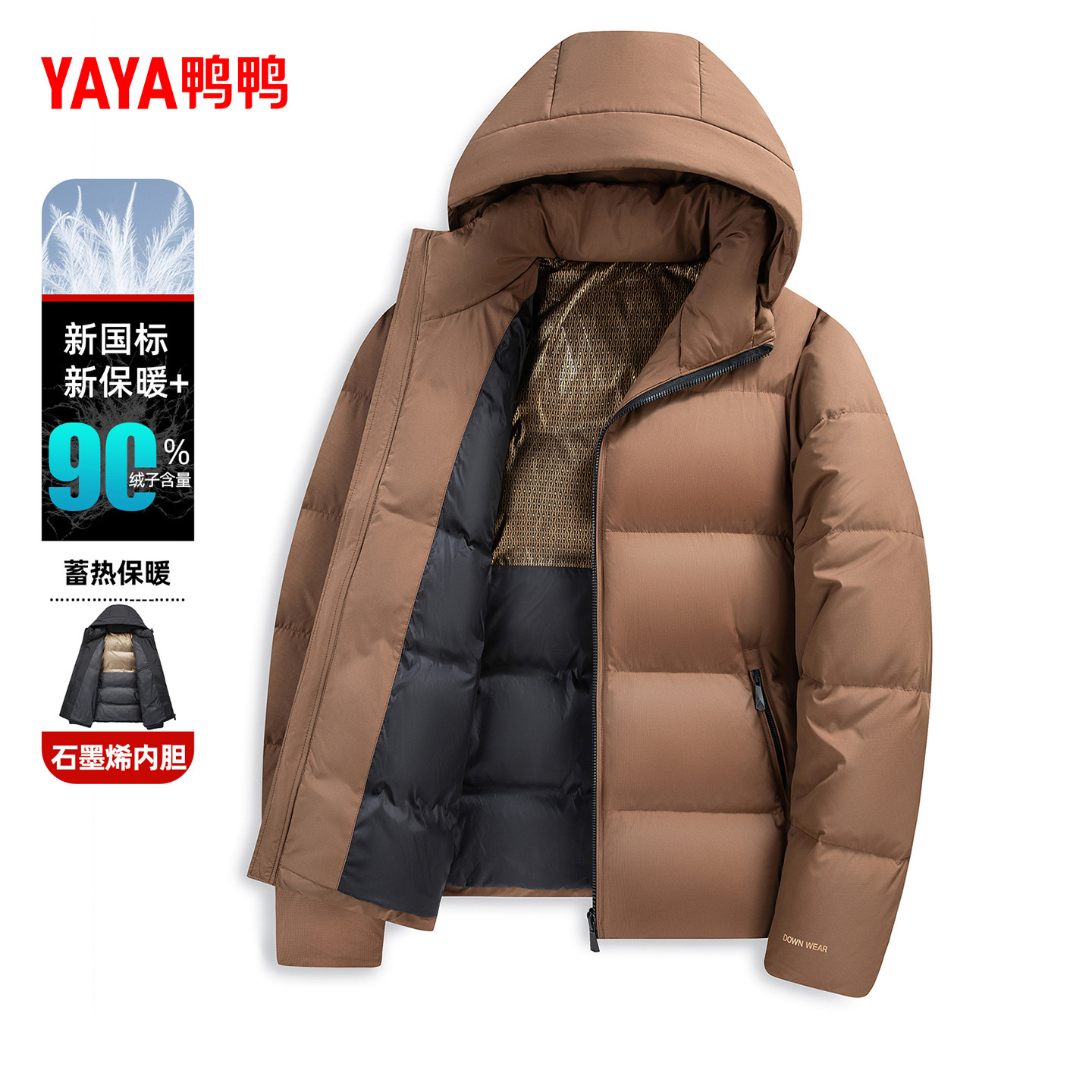 鸭鸭男士羽绒服2025年冬新品时尚休闲纯色短款连帽加厚保暖外套Y