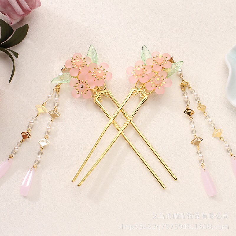 儿童发簪古风盘发儿童汉服女童古装超仙流苏步摇头饰发钗头饰簪子