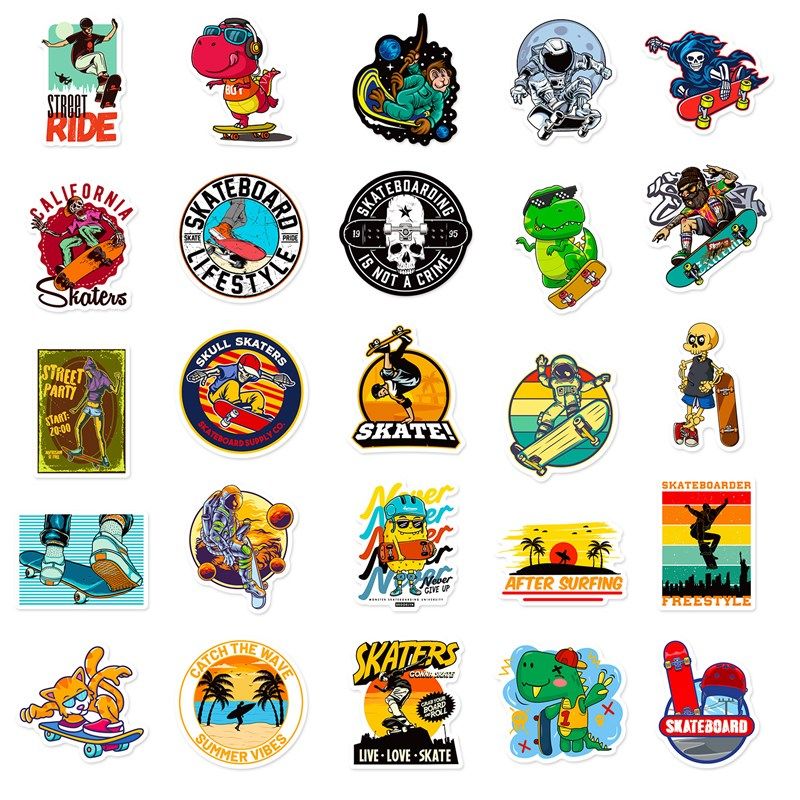 50张酷炫滑板贴纸 个性卡通平衡车滑板车头N盔行李箱吉他涂鸦贴纸