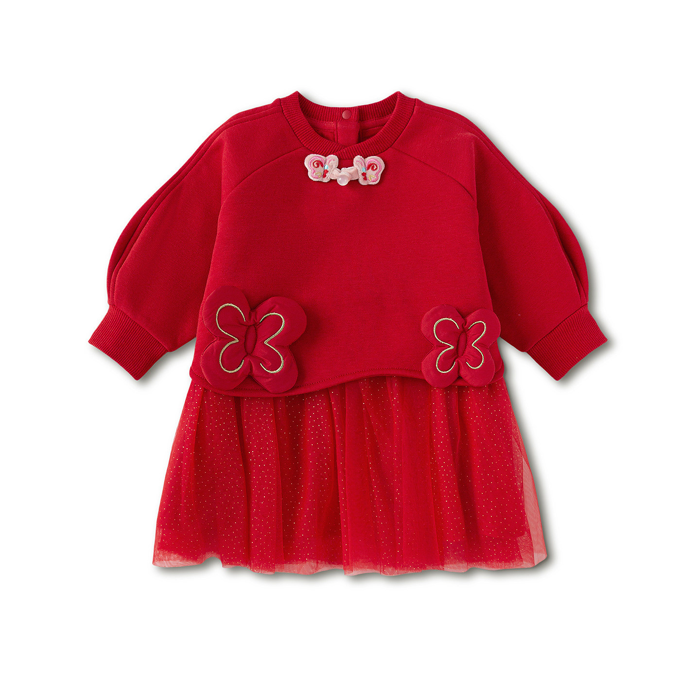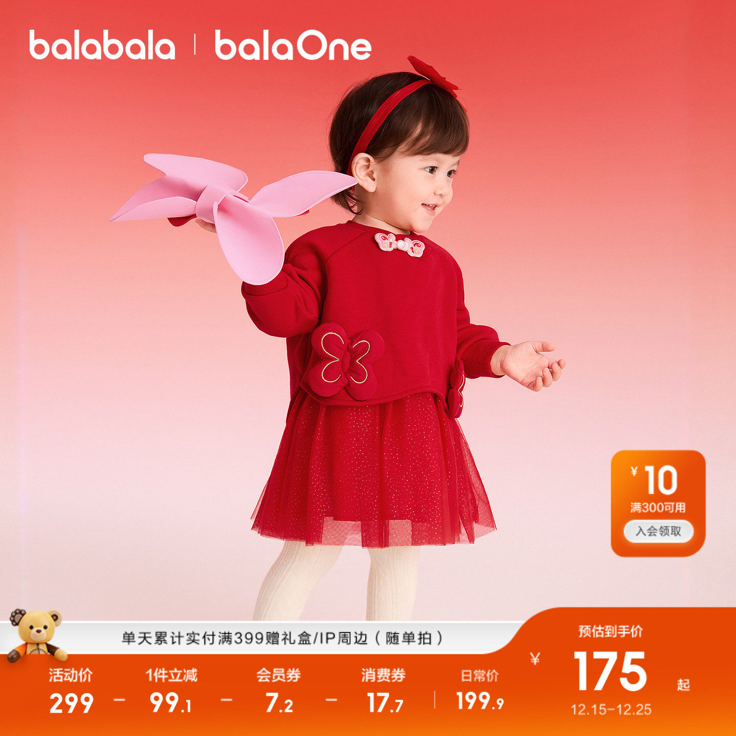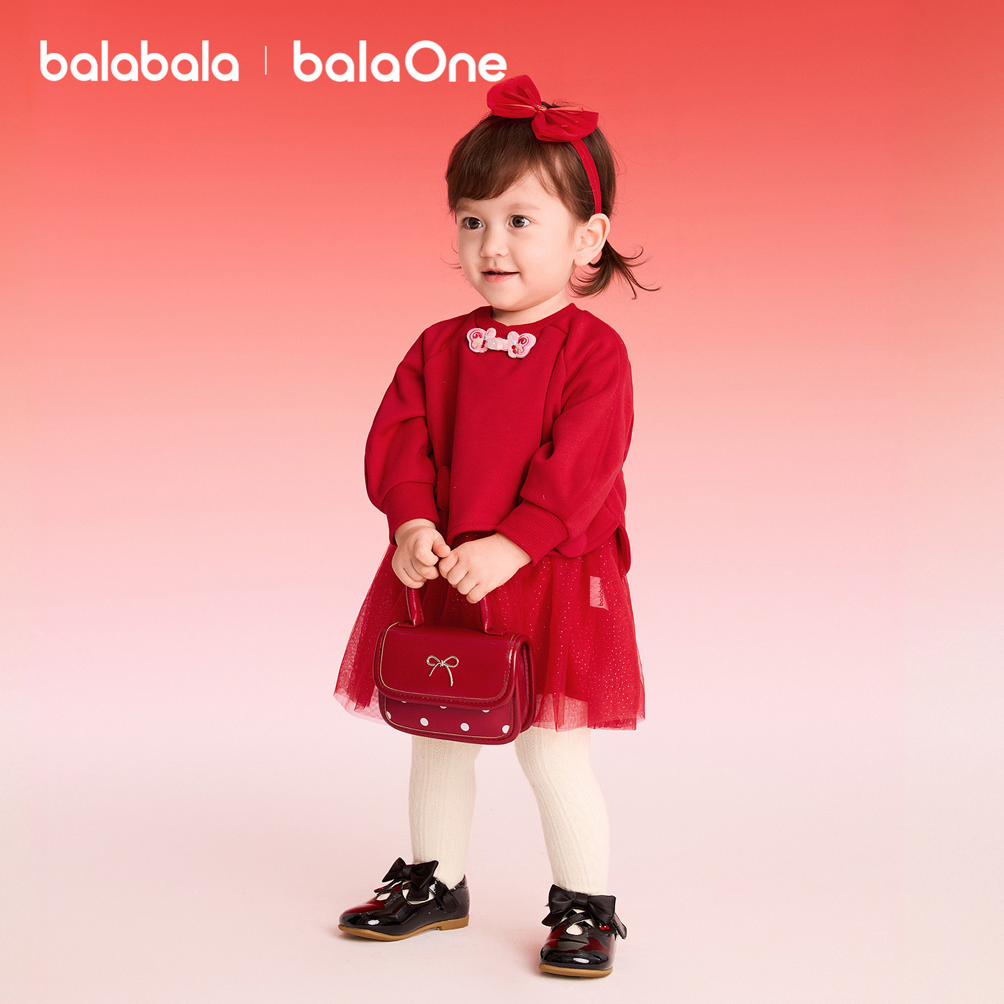 巴拉巴拉童装女童连衣裙子新中式2025新秋冬装红色拜年服宝宝网纱