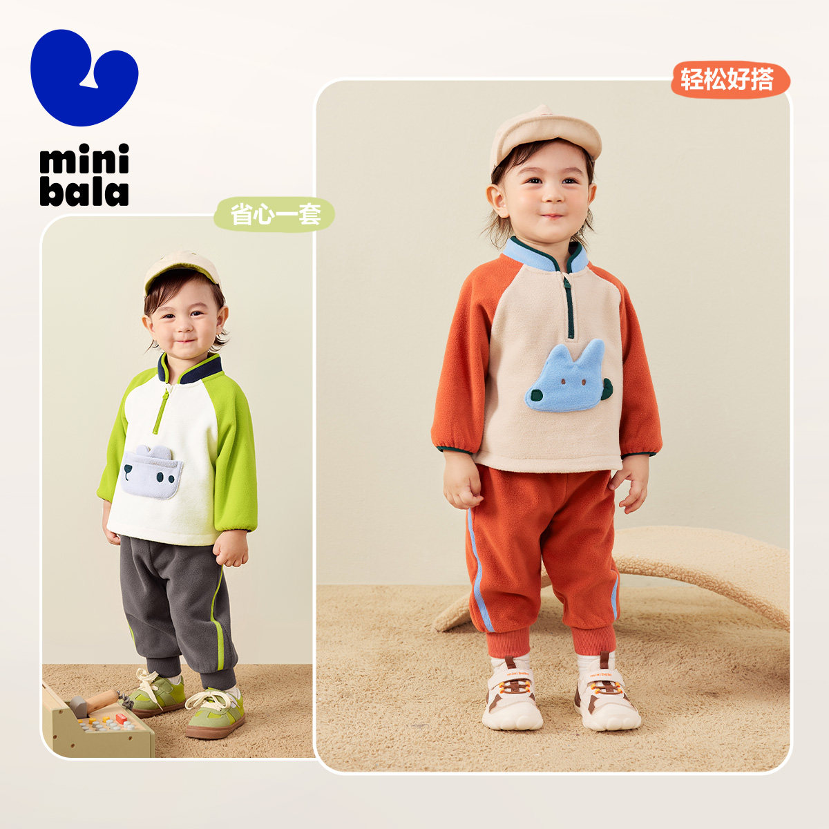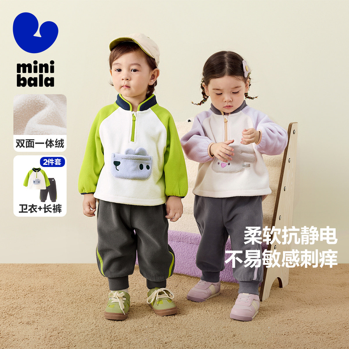 【净电绒】迷你巴拉巴拉男女童卫衣长袖长裤摇粒绒套装宝宝一体绒