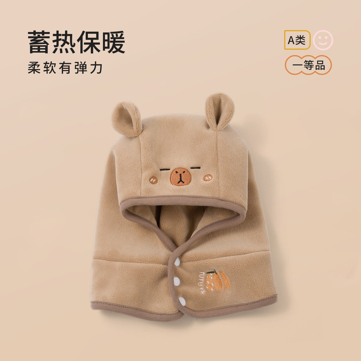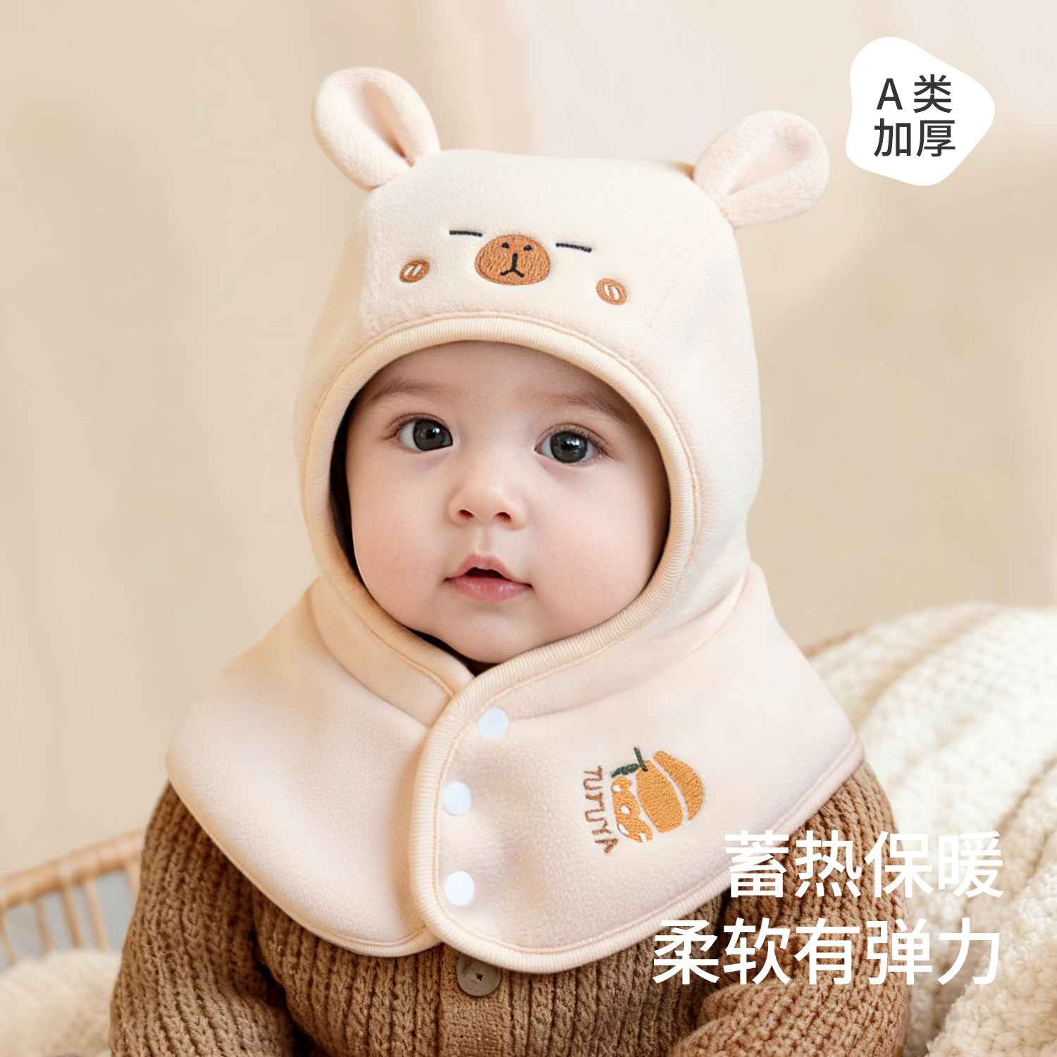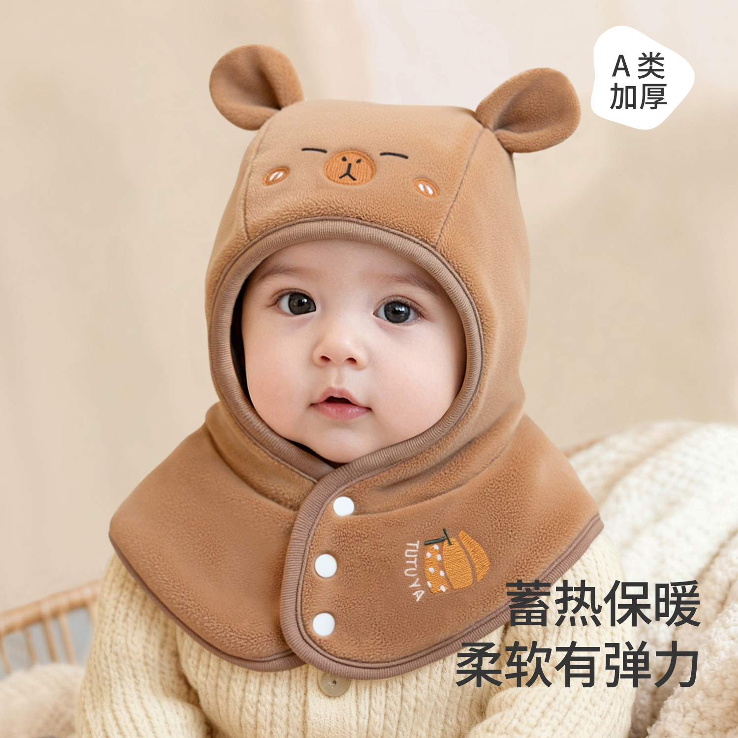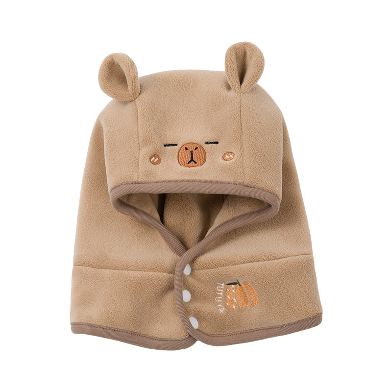 尼多熊婴儿帽子秋围脖一体宝宝毛绒帽防风护耳帽冬季保暖婴幼儿帽