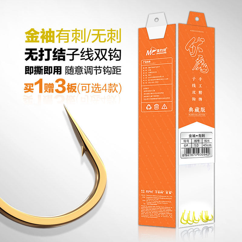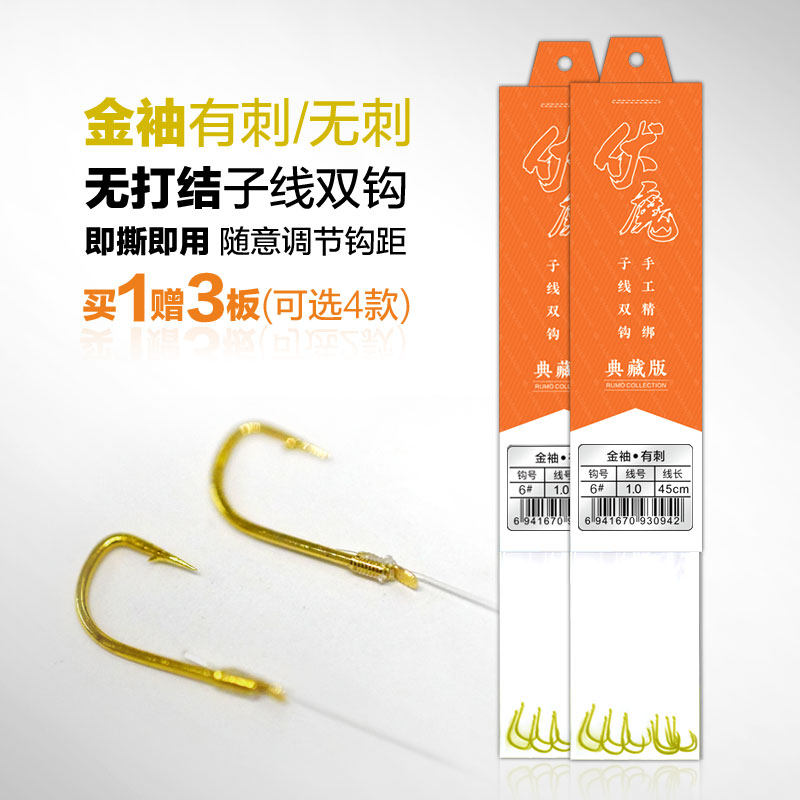 金袖鱼钩鱼线绑好鱼钩套装全套子线双钩成品组合防缠鲫鱼钩钓鱼