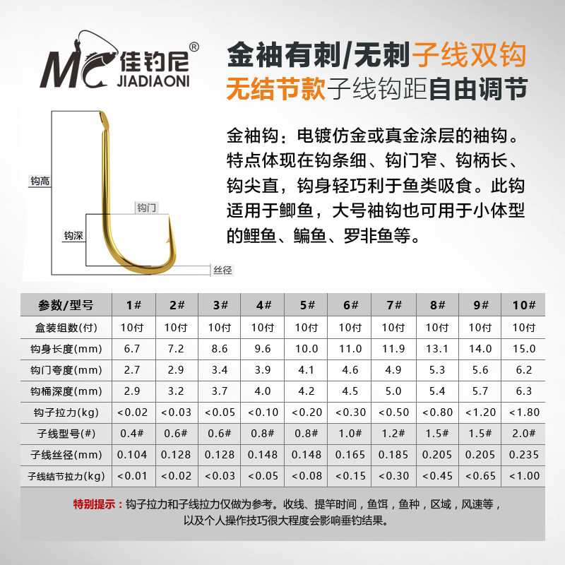 鱼钩绑好短子线双钩成品套装钓鱼袖钩金海夕金袖渔具野钓鲫鱼钩