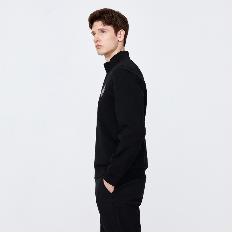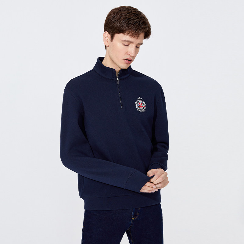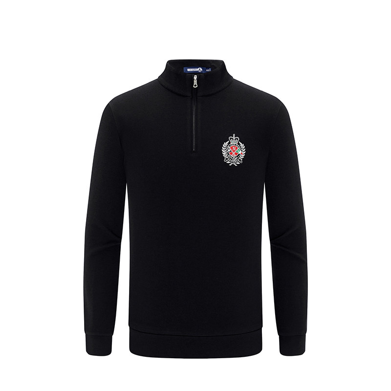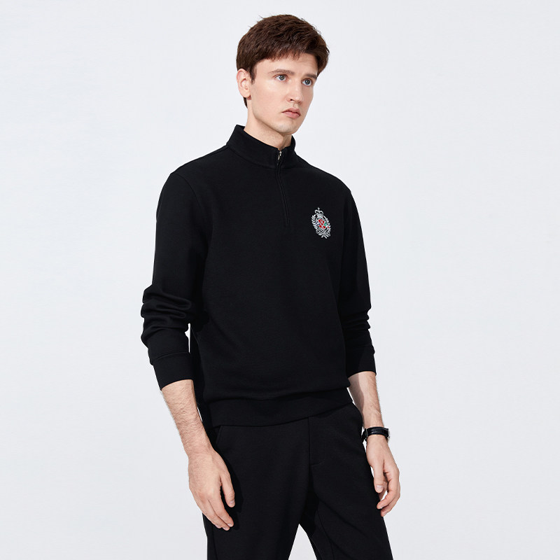 Navigare意大利小帆船秋季黑色半开领长袖T恤男高级打底上衣