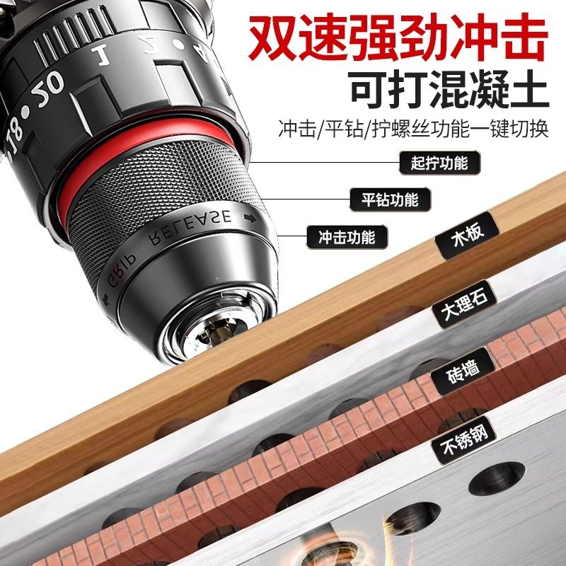 12V锂电钻双速充电钻手枪钻21V多功能家用冲击电动螺丝刀手电钻
