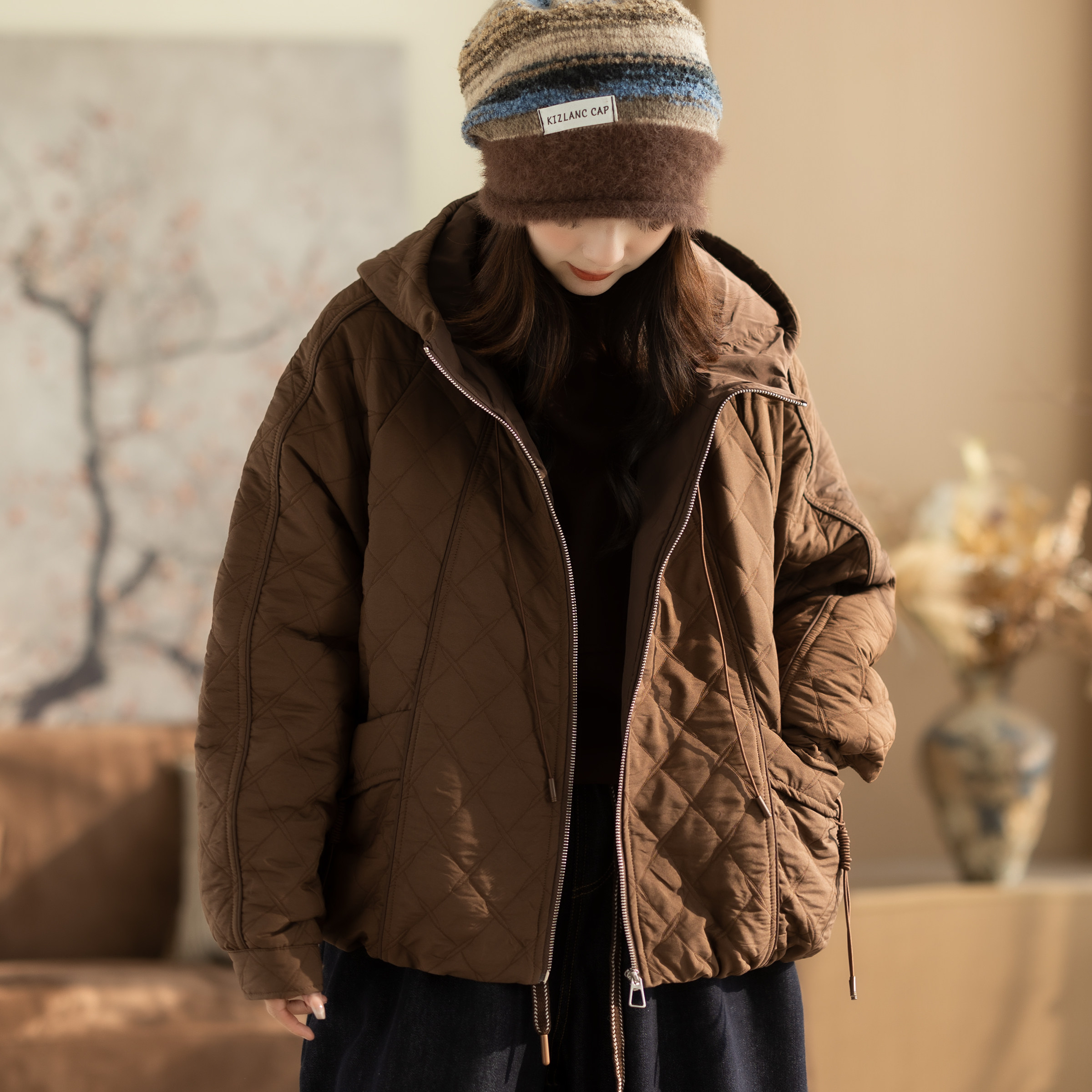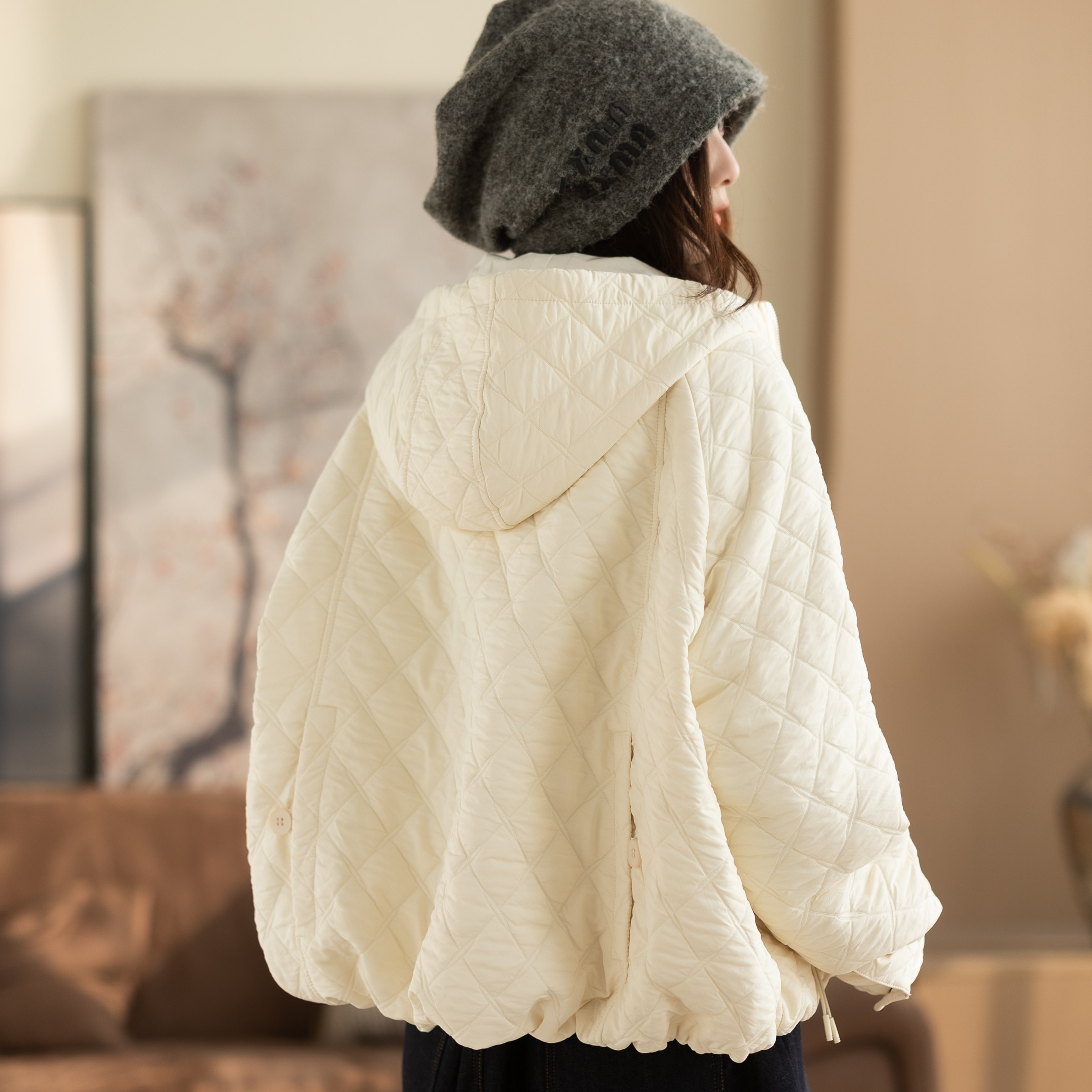 咖咪羽外套女秋冬新款文艺休闲气质宽松纯色女士流行好看女装棉袄