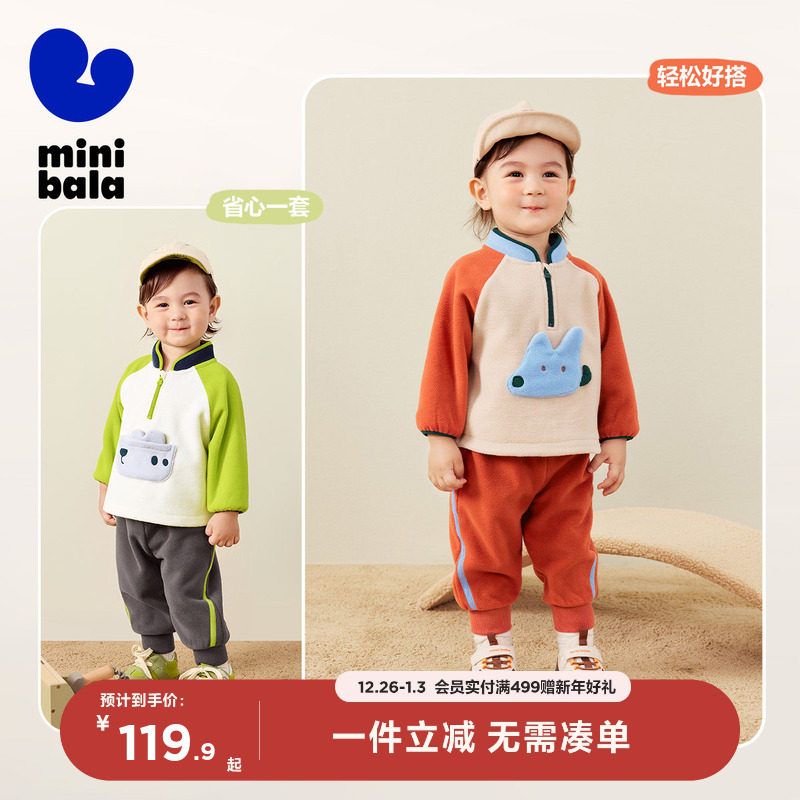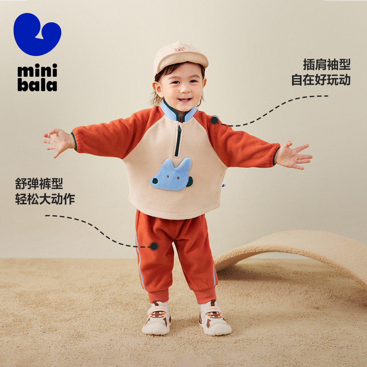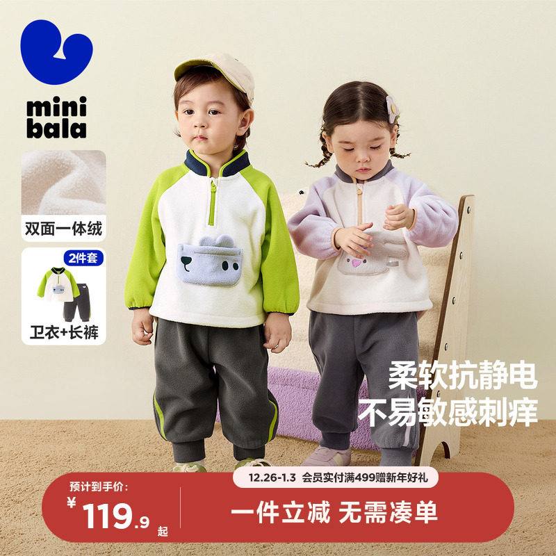 【净电绒】迷你巴拉巴拉男女童卫衣长袖长裤摇粒绒套装宝宝一体绒