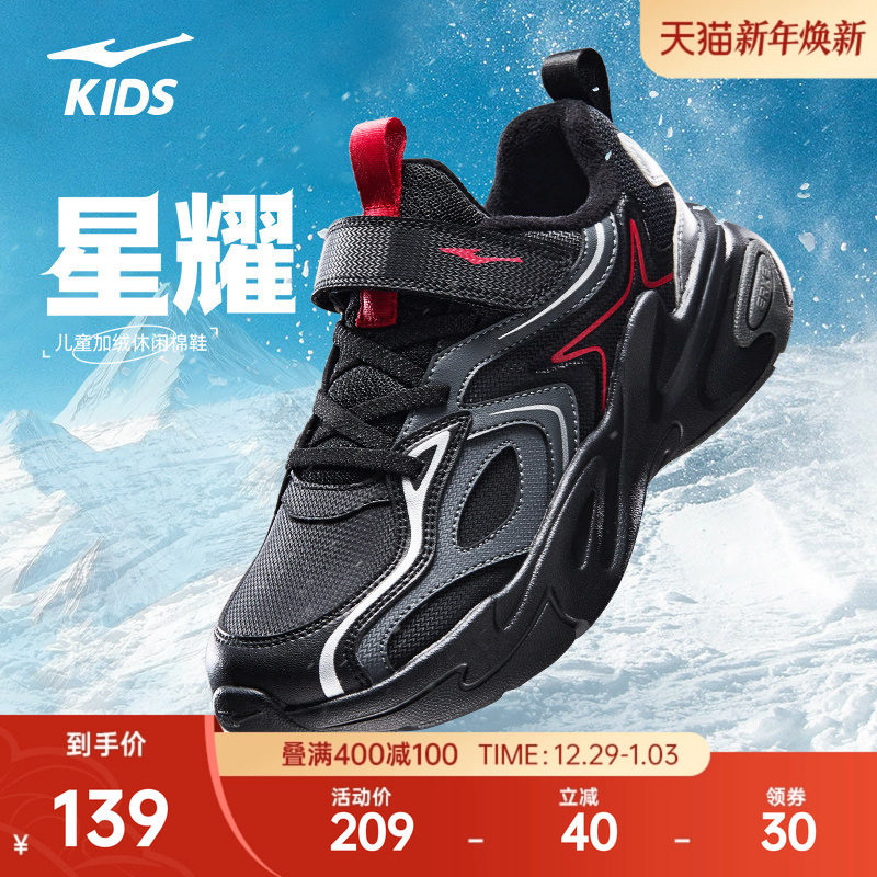 星耀2鸿星尔克儿童鞋冬季新款鞋子加绒加厚棉鞋男童运动鞋跑步鞋