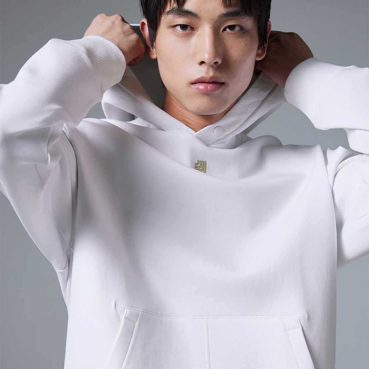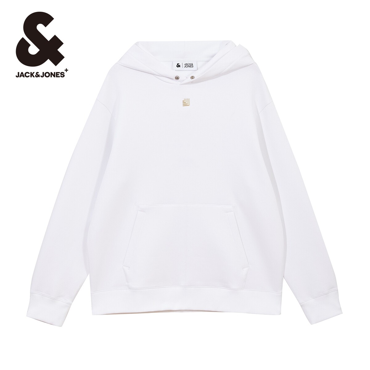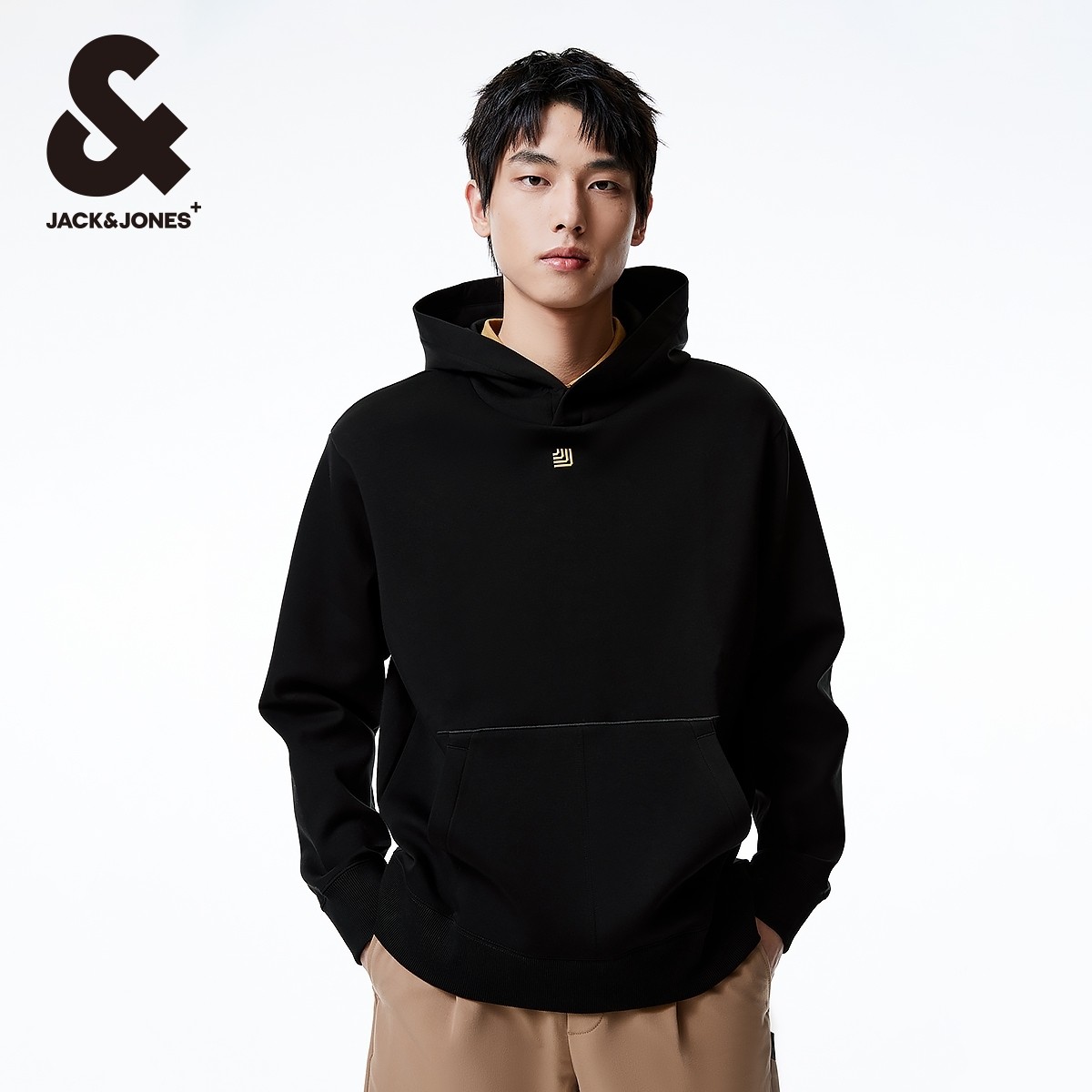 杰克琼斯24年秋季新款男士个性字母胶印纯色潮流设计连帽卫衣男装