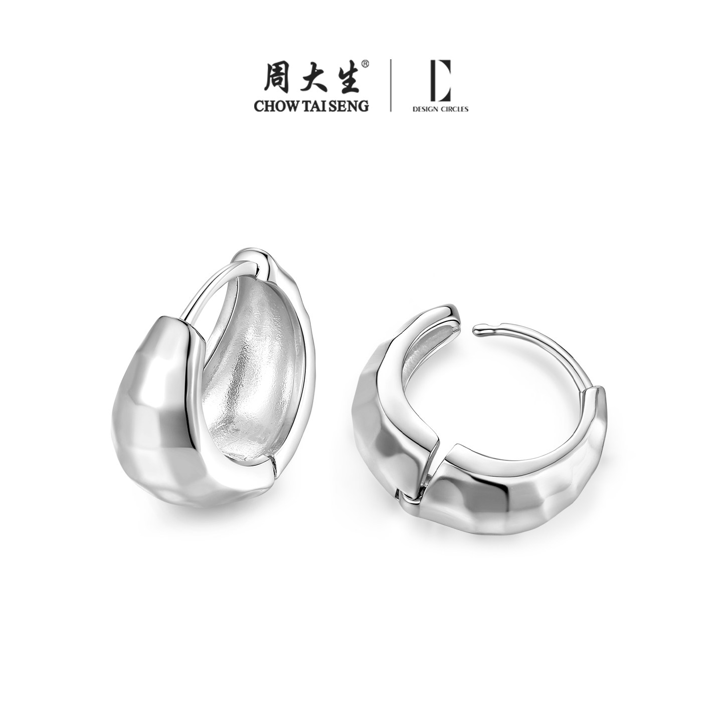周大生耳圈女S925银轻奢高级感耳环圈圈素圈耳饰情人节礼物送女友