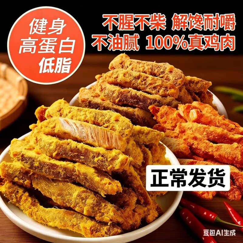 风干鸡肉干鸡胸肉条减低耐嚼卡脂休闲晚上解饿馋食品零食即食健身