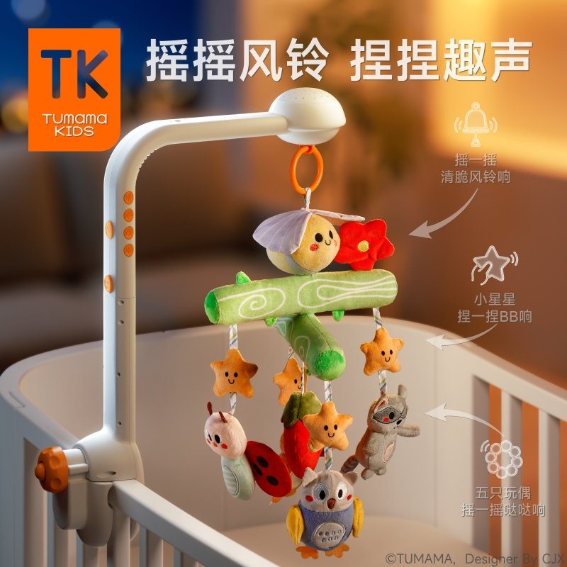 新生婴儿床铃0-1岁3-6个月宝宝玩具旋转床头摇铃车挂件悬挂式支架