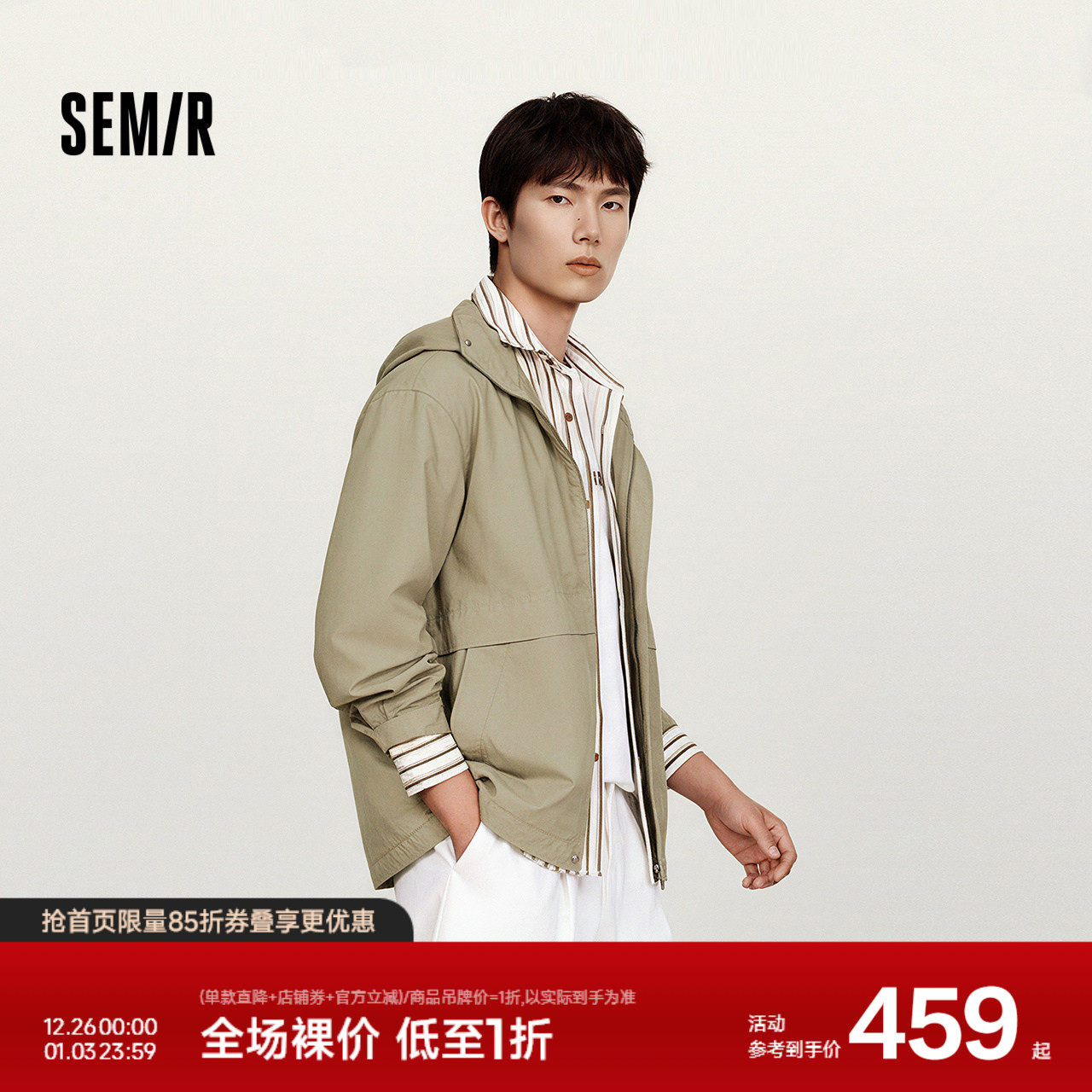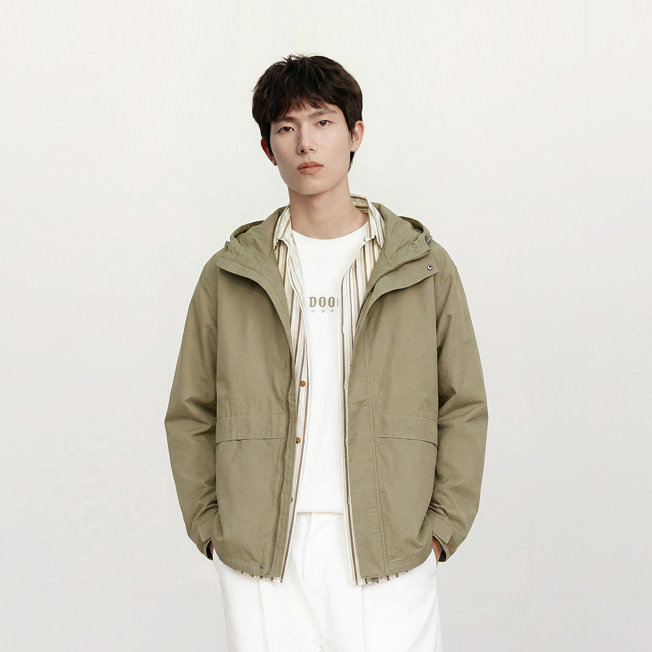 森马夹克男春季轻复古松紧绳连帽外套时尚百搭宽松水洗大插袋上衣