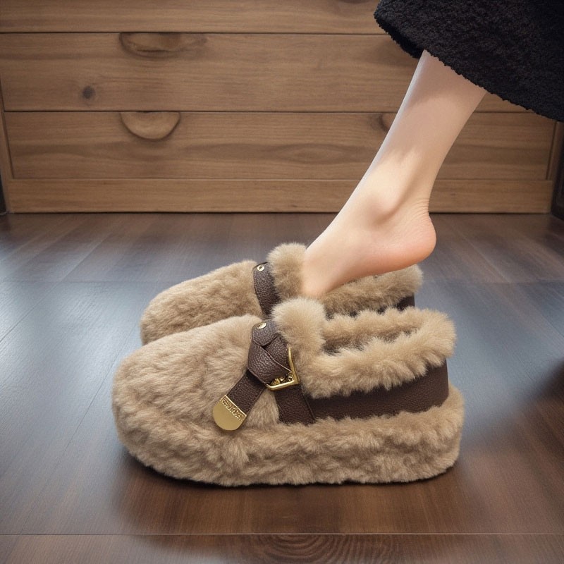 【羊羔绒】毛毛鞋女外穿2025新款冬季皮带扣厚底加绒保暖防滑棉鞋