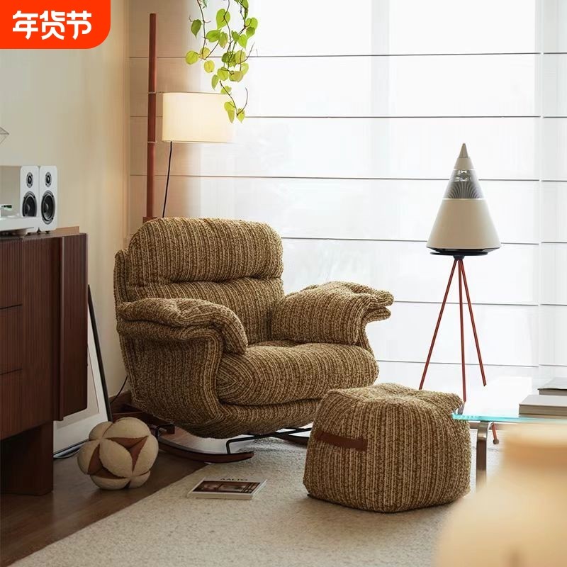 中古风单人沙发家用阳台客厅休闲沙发可躺可睡复古懒人折叠摇摇椅