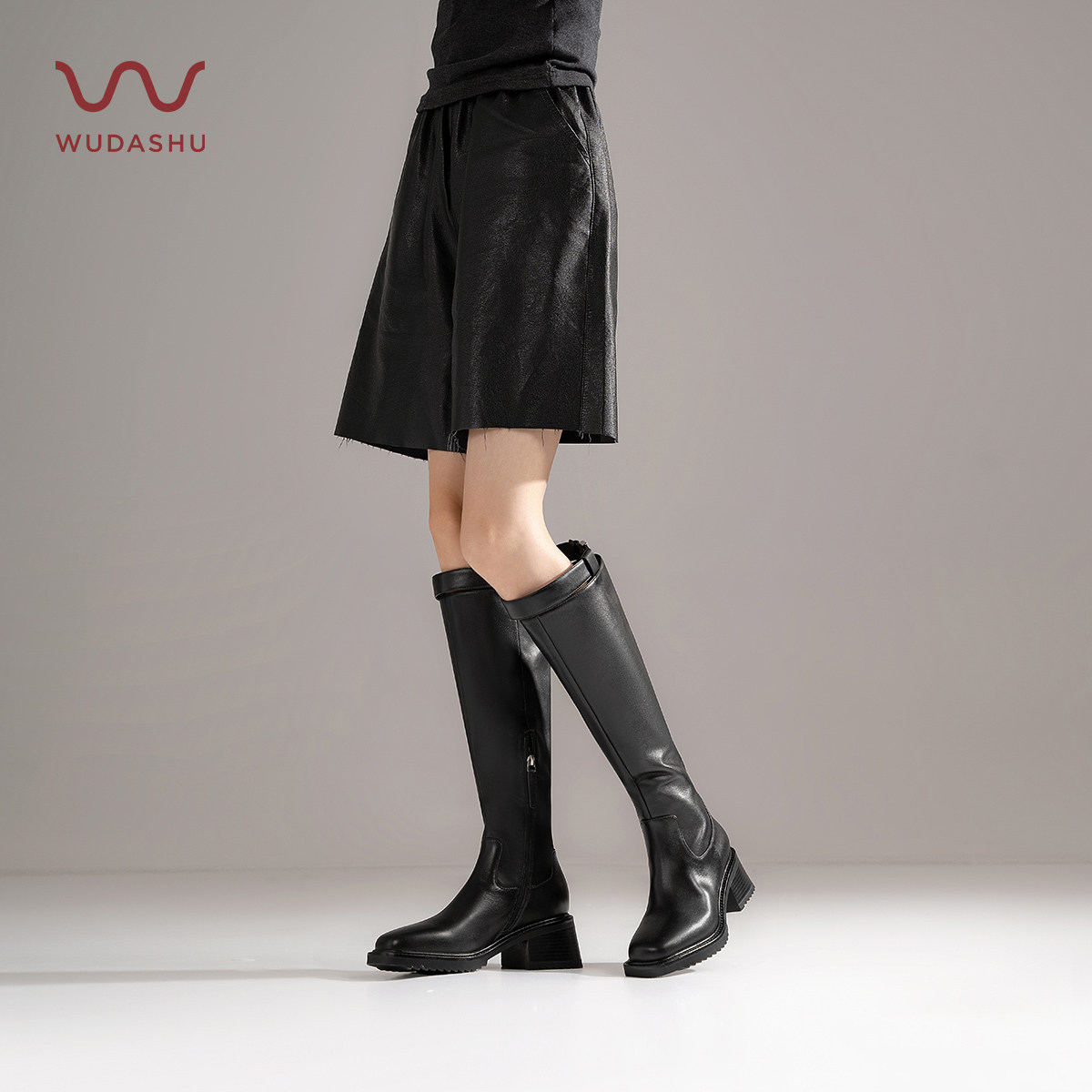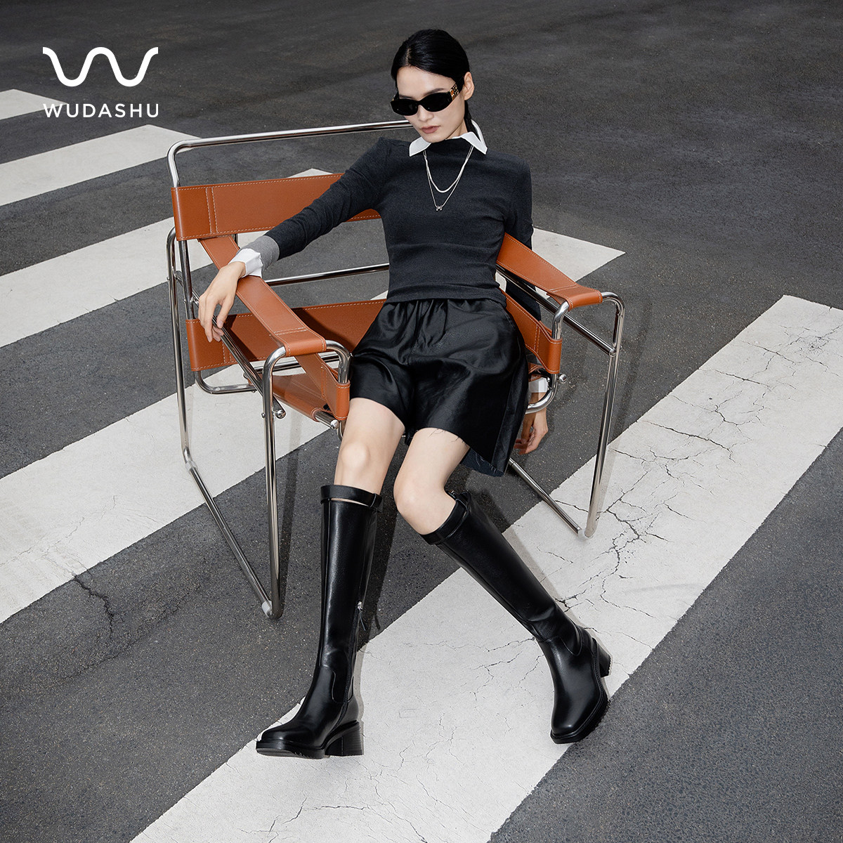 吴大叔2025秋冬时尚百搭粗跟长靴女通勤显瘦气垫缓震高级骑士靴