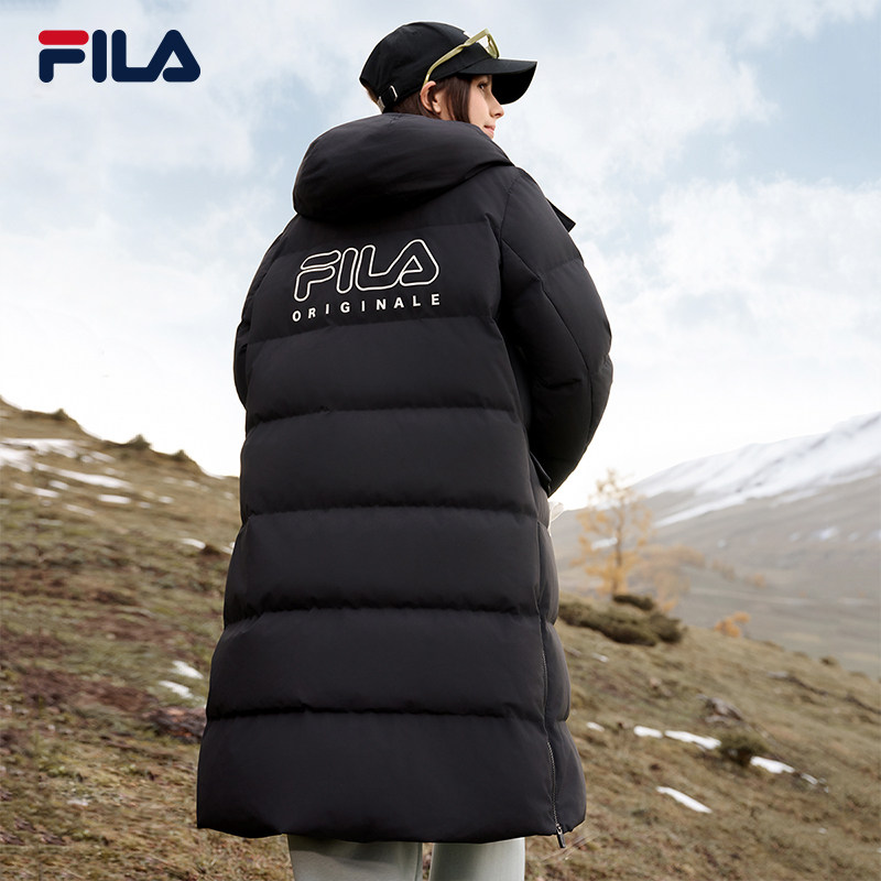 FILA斐乐女士长款羽绒服冬季防泼水防污防风运动宽松连帽保暖外套
