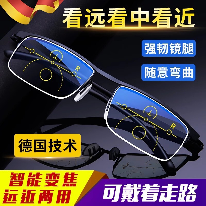 老花镜男远近两用智能度数调节变焦中老年高清老花眼镜防蓝光渐进