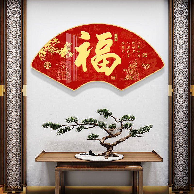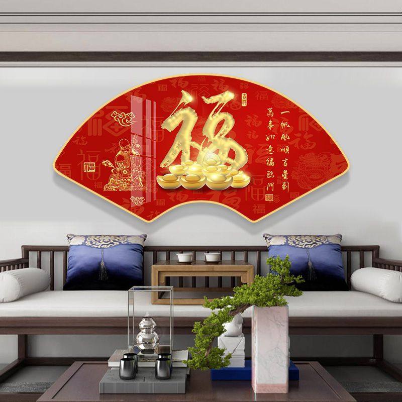 新中式挂画福字挂件客厅装饰画电视背景墙扇形挂饰餐厅大气装饰品