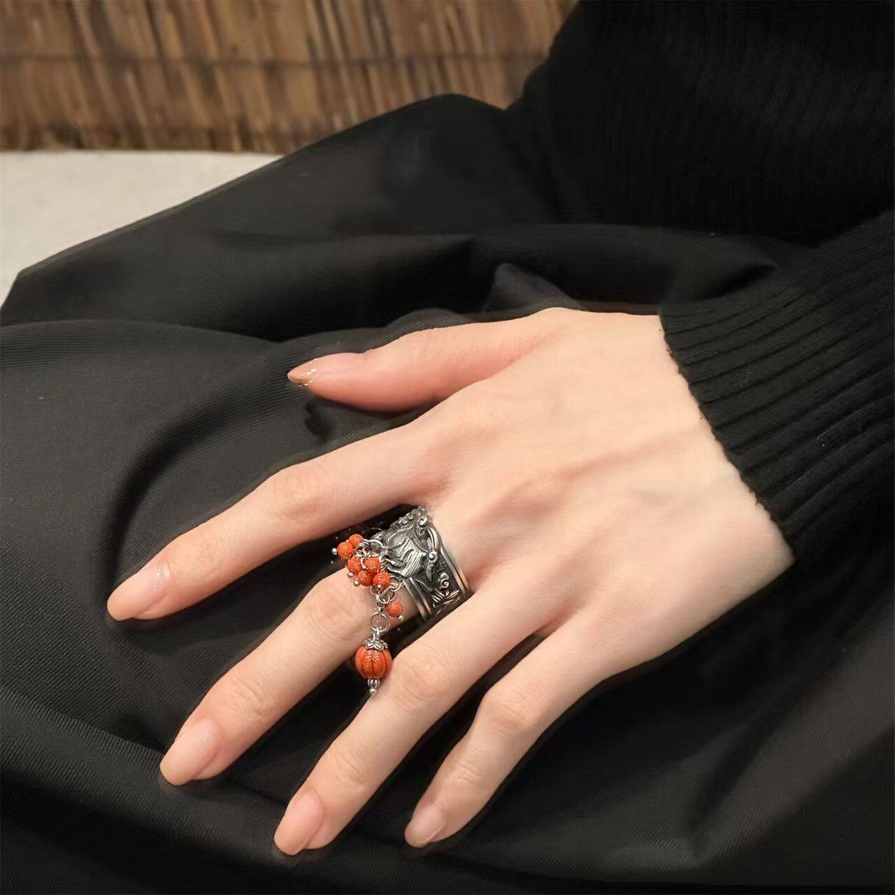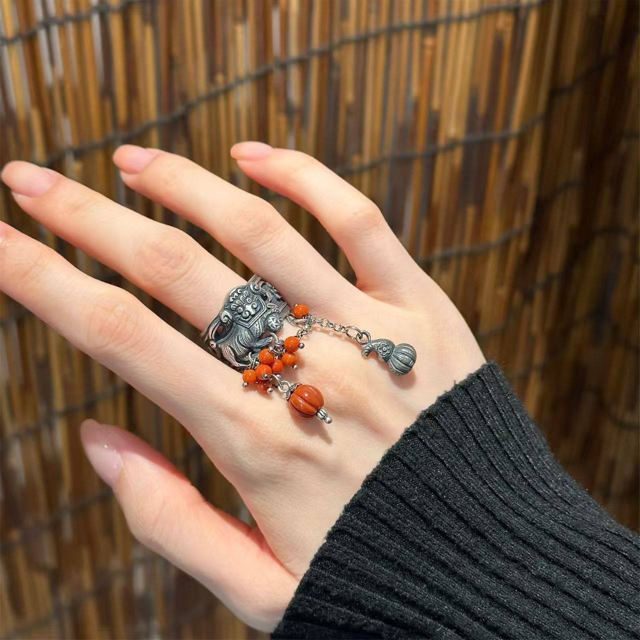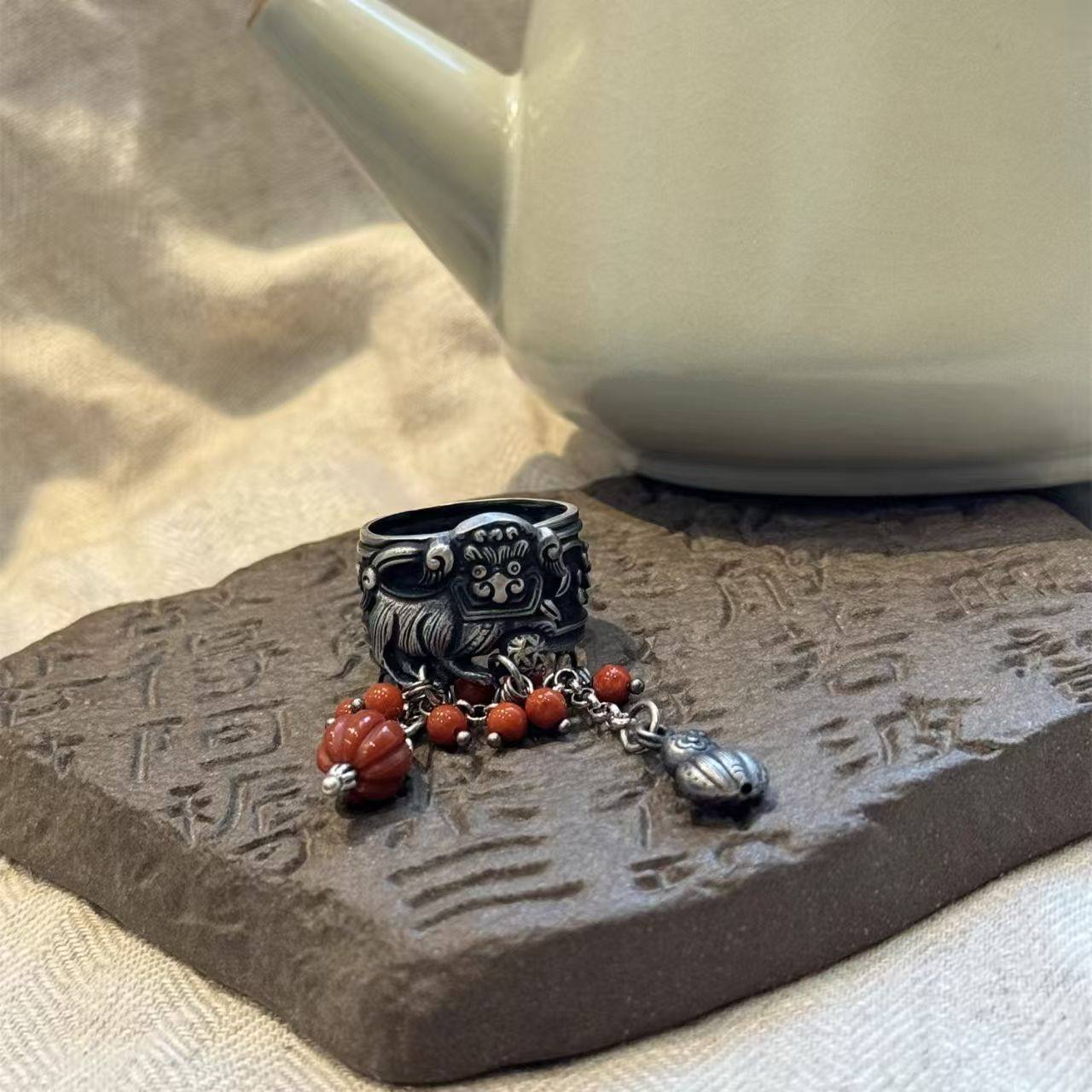 「醒狮踩绣球」醒狮滚绣球滴溜戒指国风新中式古典开口戒舞狮尾戒