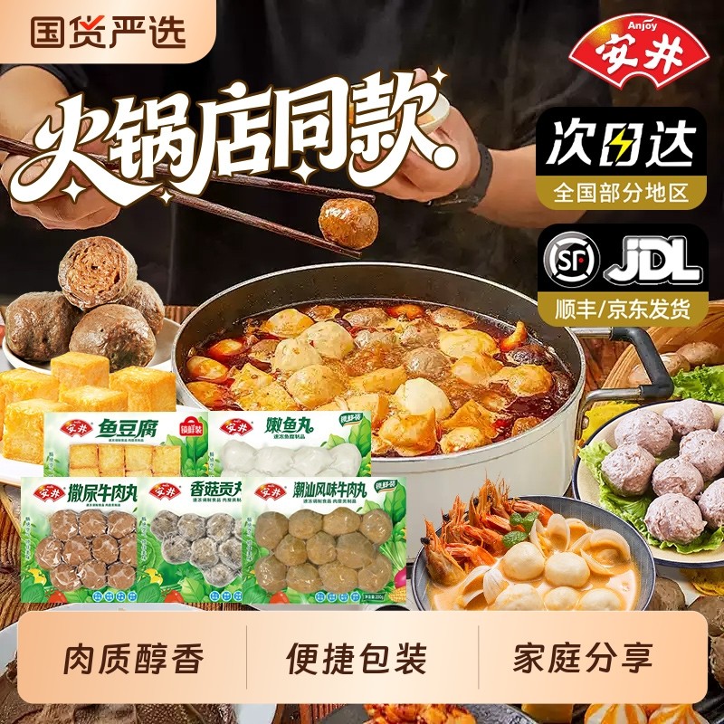 安井潮汕撒尿牛肉丸锁鲜装嫩鱼丸鱼豆腐香菇贡丸火锅料关东煮串串