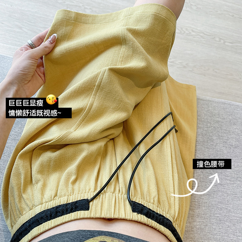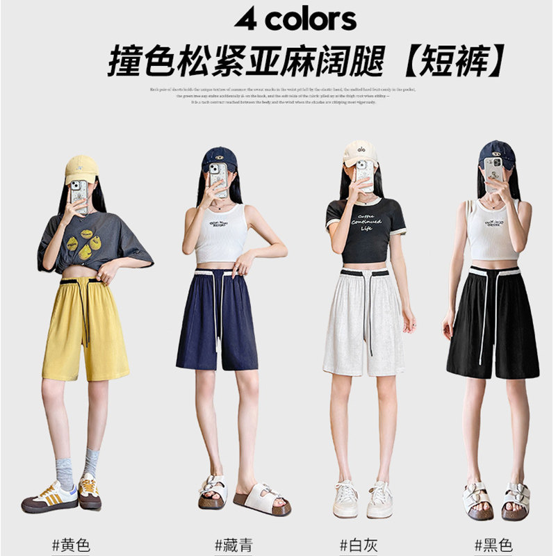 NOME(服饰)2025夏款女莱赛尔冰丝亚麻短裤拼色显瘦百搭休闲短裤