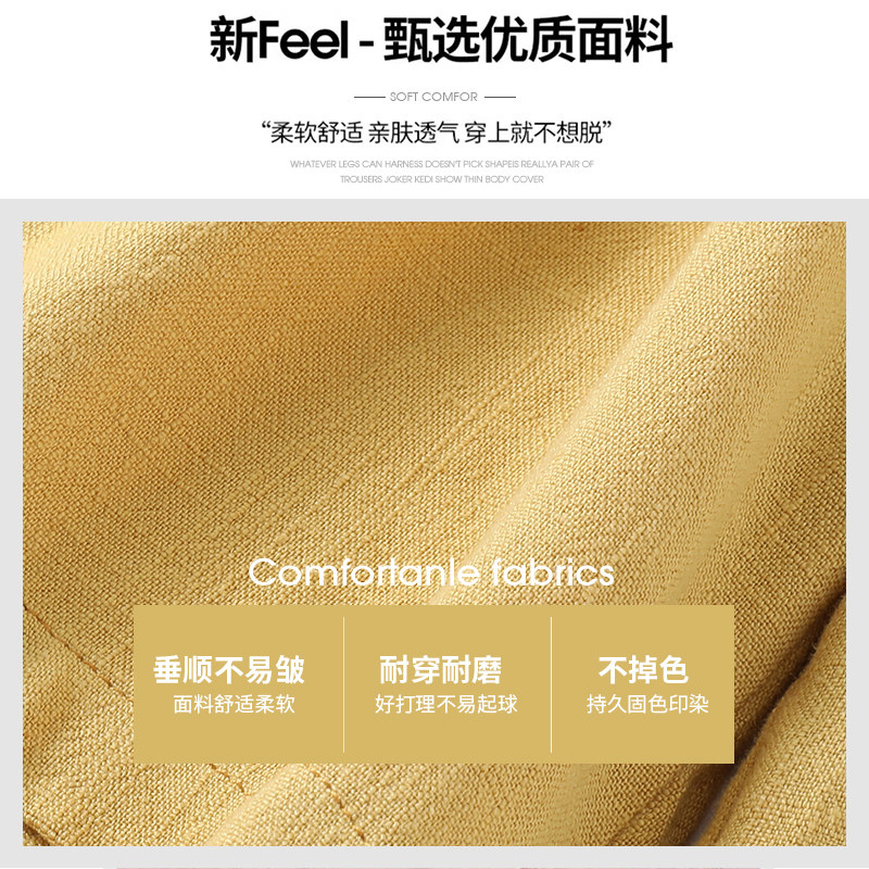 双侧带口袋棉绸绵绸人造棉高腰显瘦直筒裤女宽松休闲百搭阔腿长裤