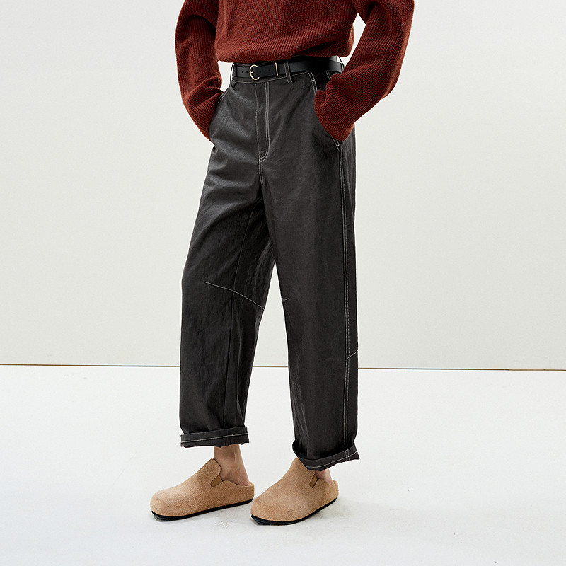 唐狮DESSO秋冬新款糯米裤高腰垂感宽松加绒直筒阔腿裤