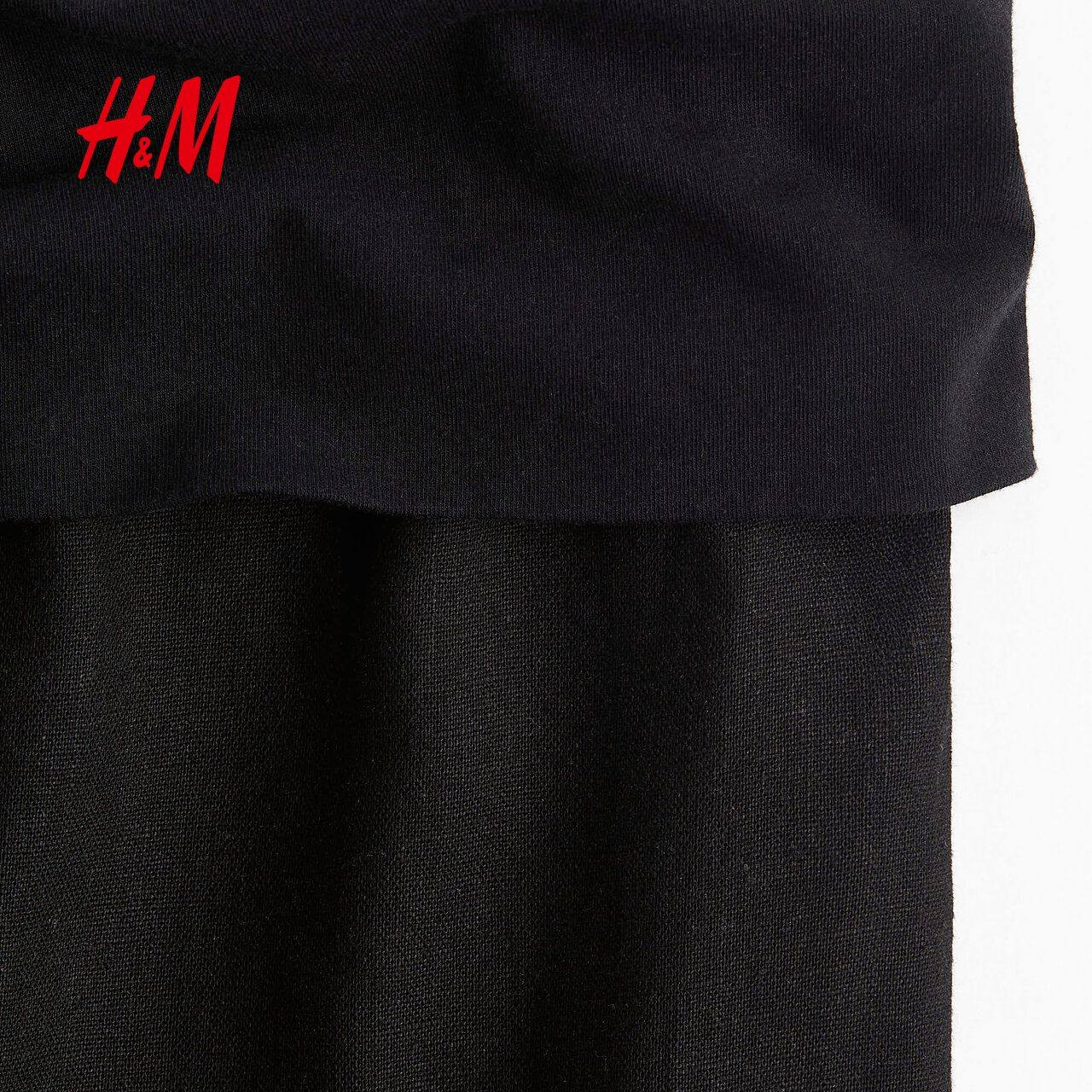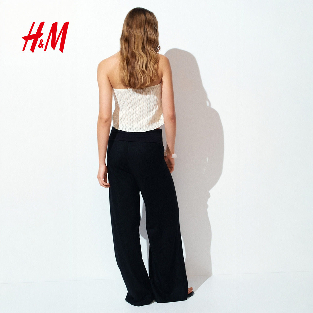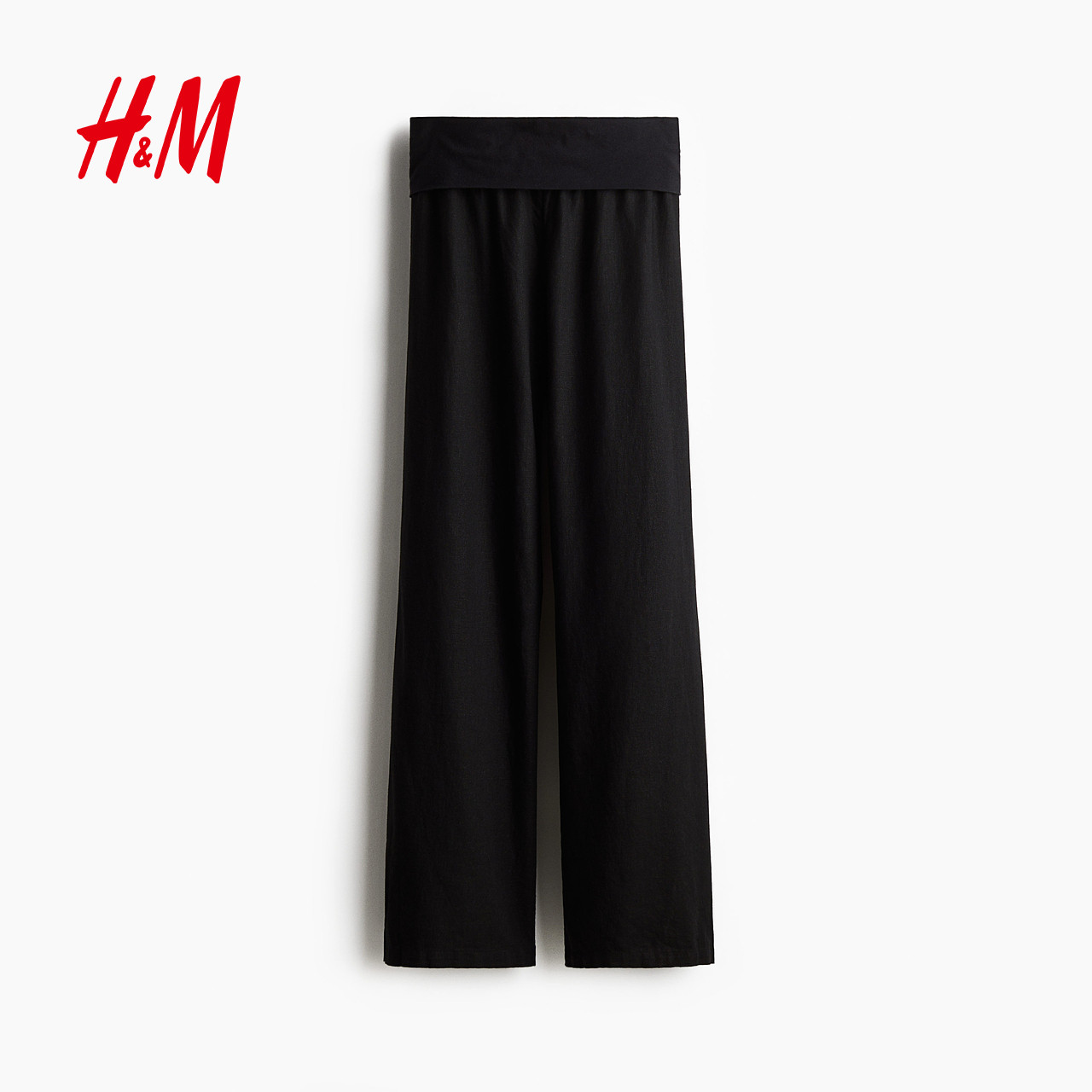 HM女士休闲裤2025年冬季新款翻折腰亚麻混纺阔腿长裤1262017