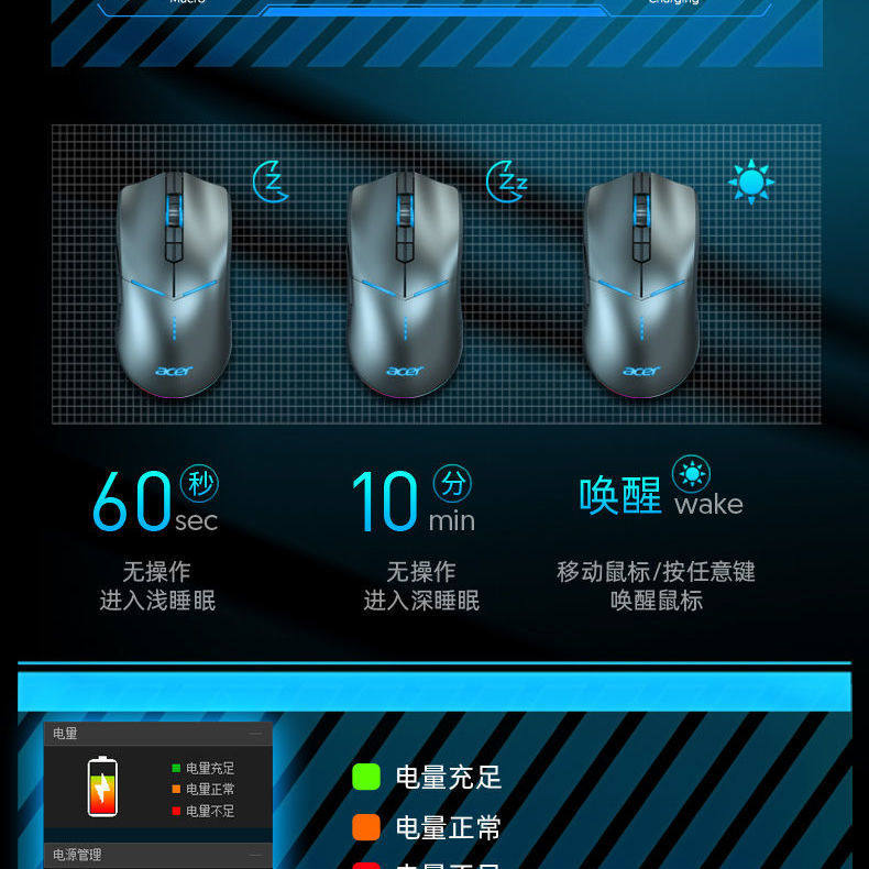 acer/宏碁 无线有线蓝牙三模鼠标RGB宏编程电竞游戏笔记本