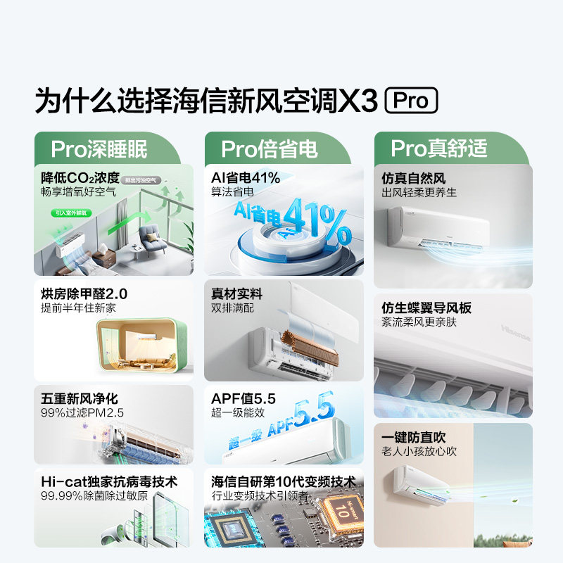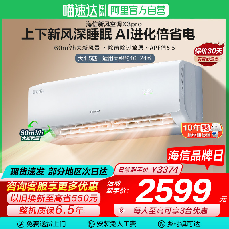 海信新风空调深睡宝X3Plus大1.5匹一级能效变频家用挂机