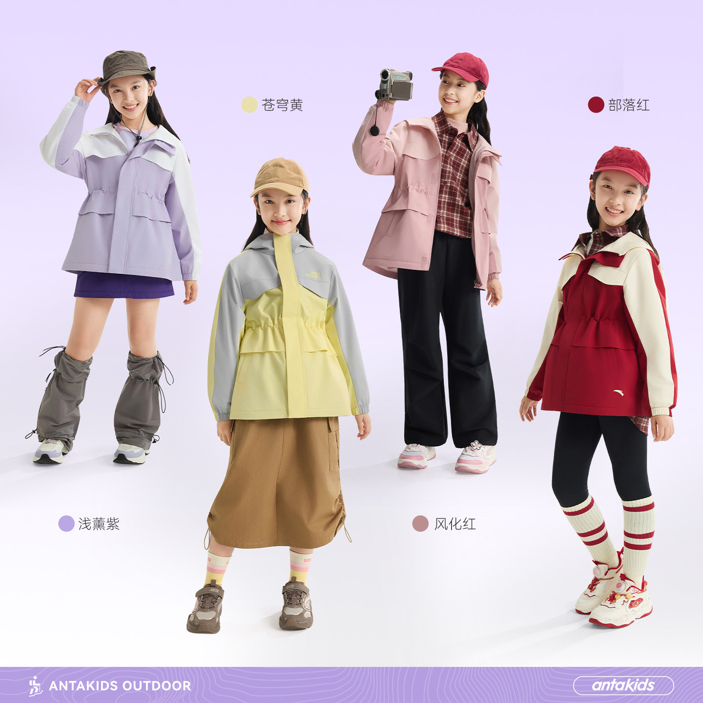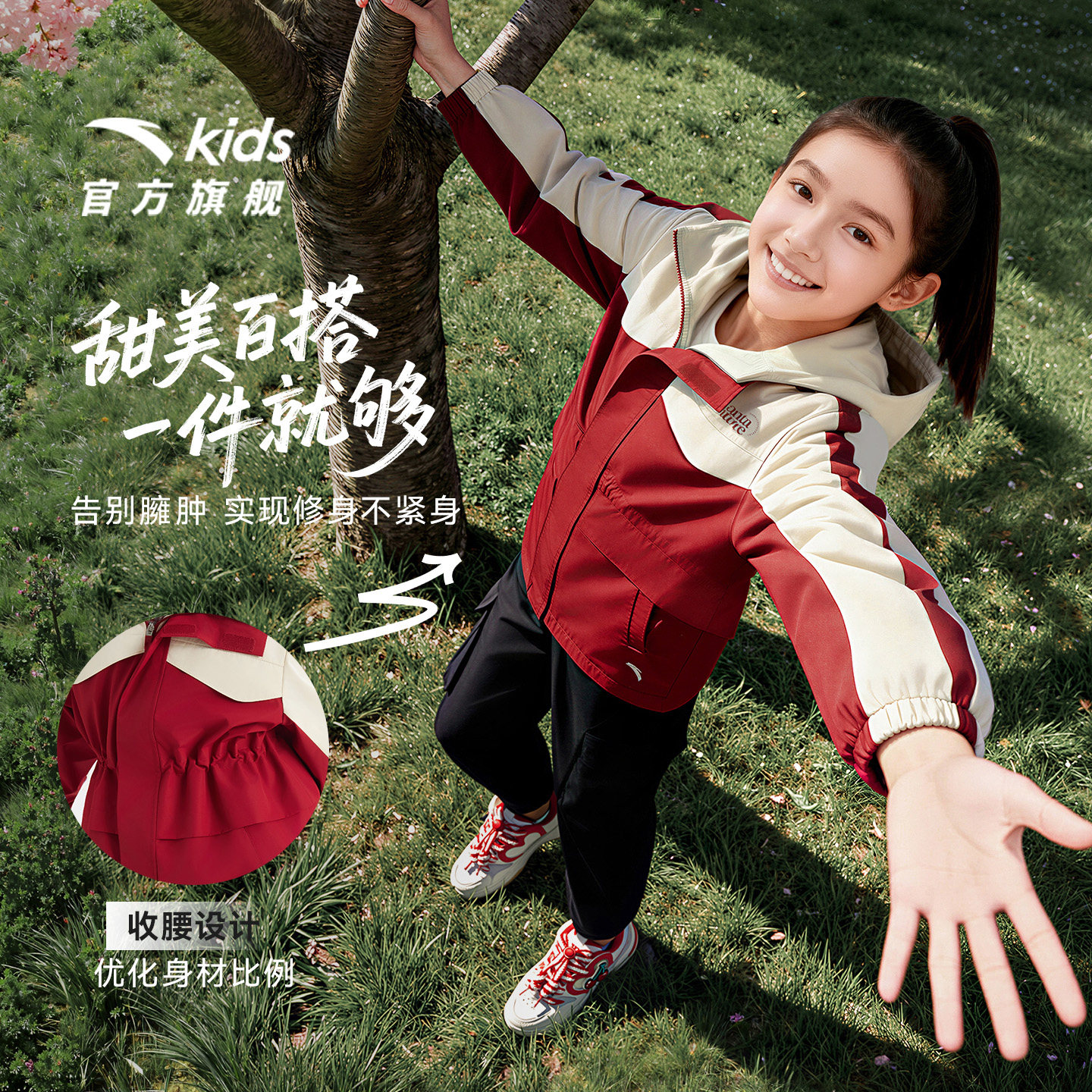 安踏儿童女童丝光绒运动上衣2026年新款舒适保暖中大童四防厚外套