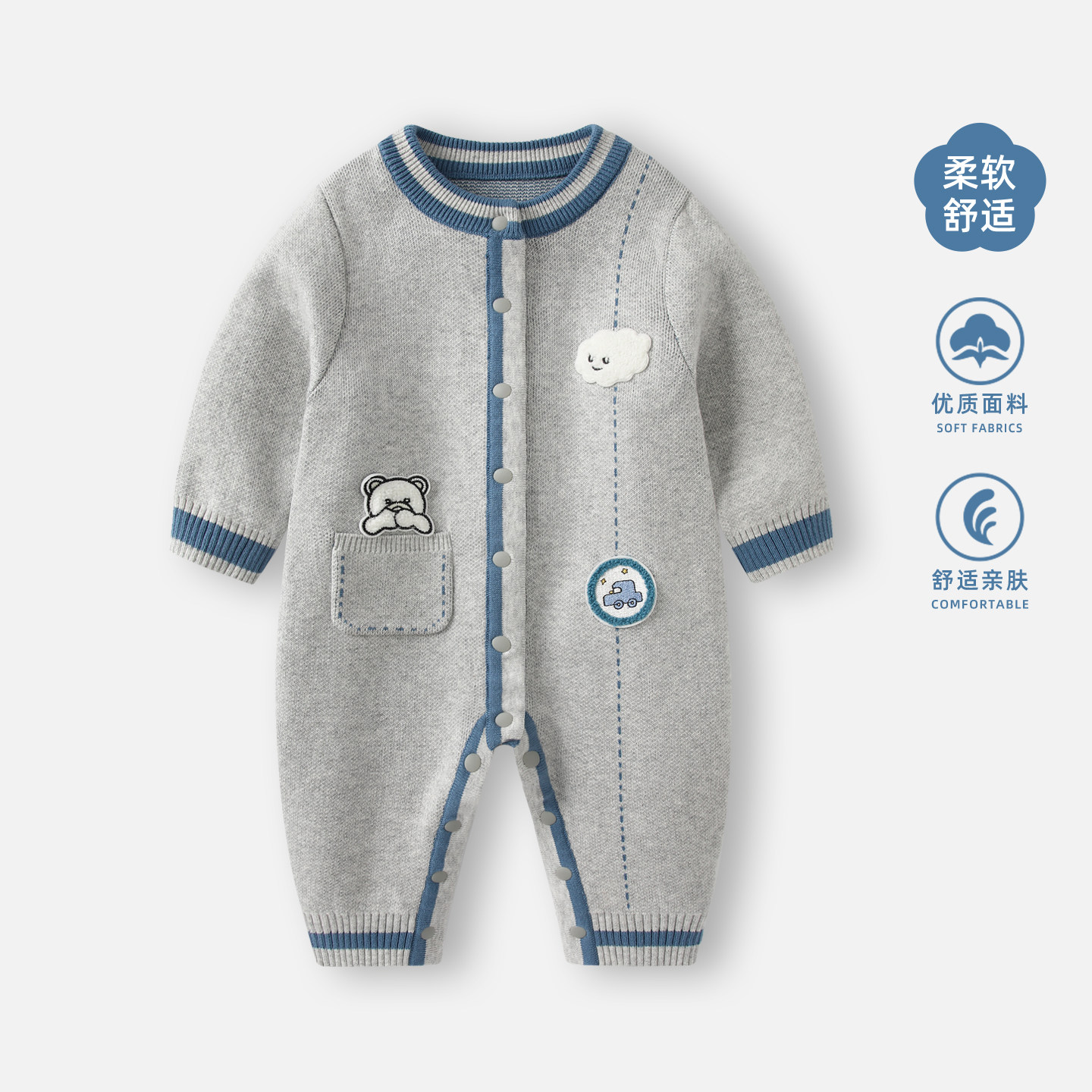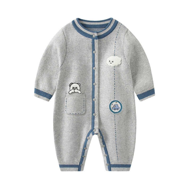 婴儿衣服春装2026连体衣宝宝春秋毛衣针织哈衣小月龄满月服爬服男