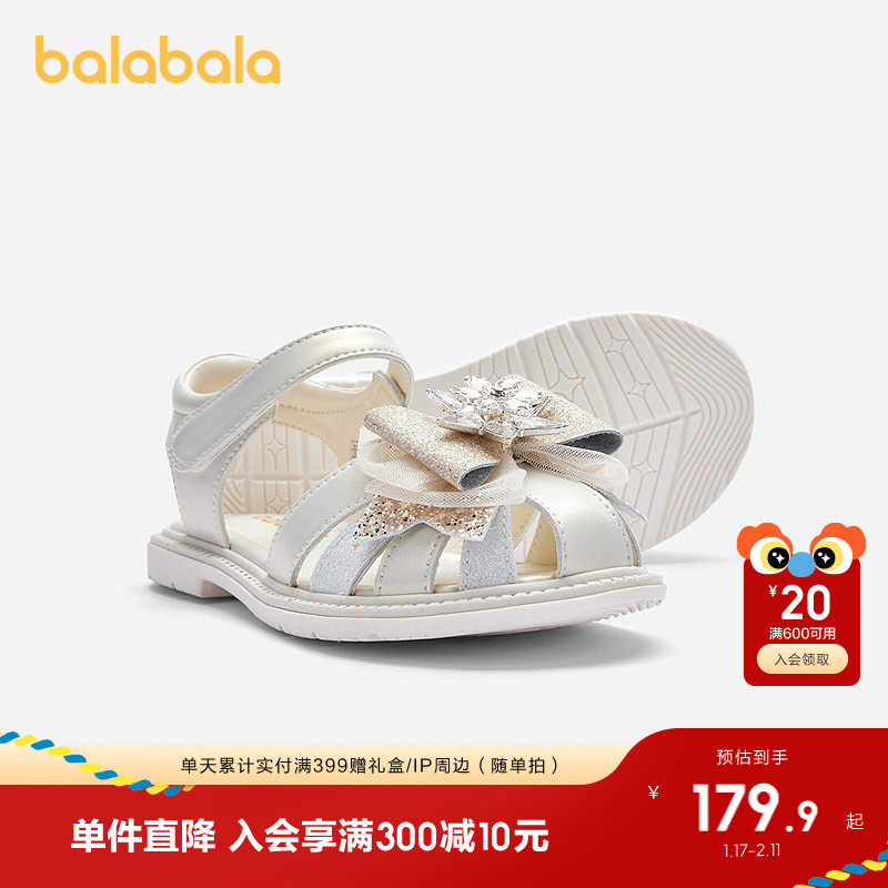 巴拉巴拉童鞋儿童凉鞋女童公主鞋2025夏季新款舒适蝴蝶结防滑鞋子