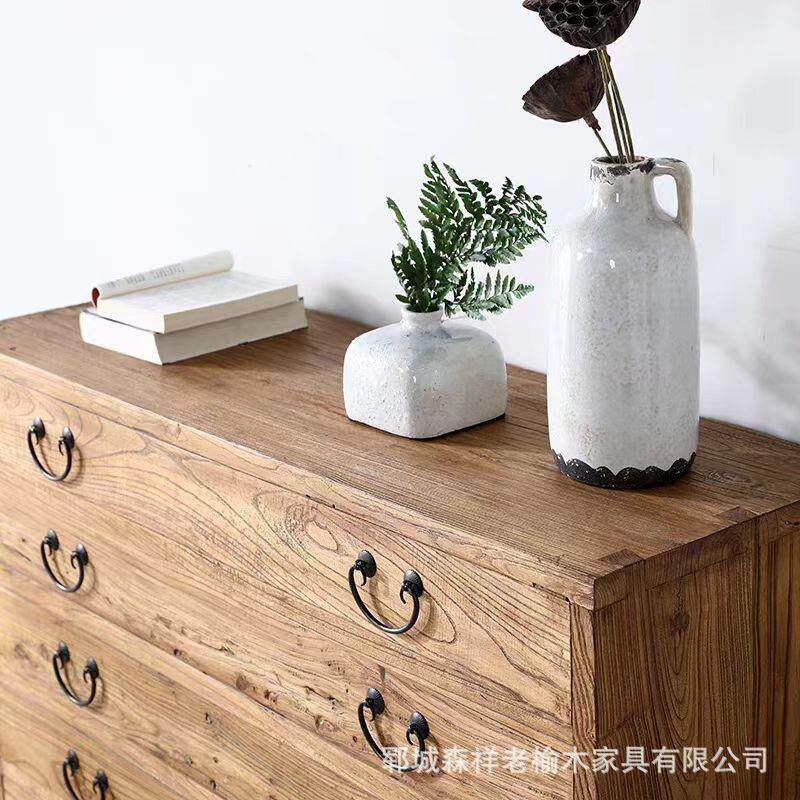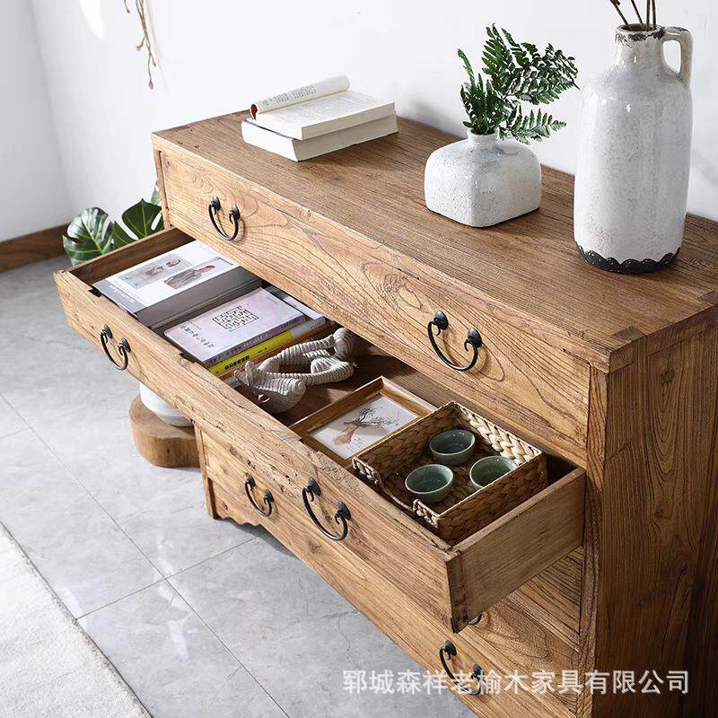 老榆木五斗柜客厅餐边柜抽屉式收纳柜靠墙储物柜复古学习书柜