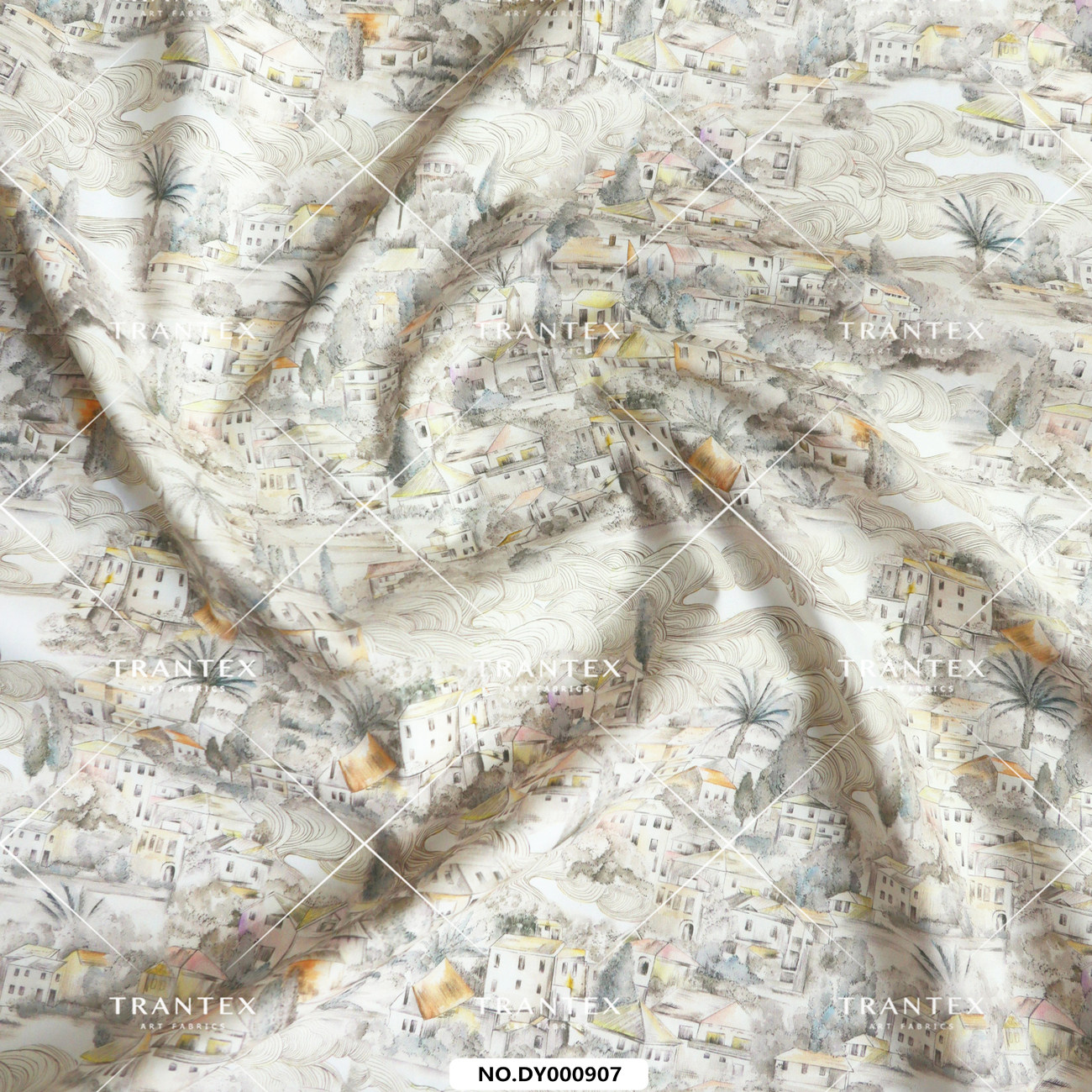 天冉艺纺100s长绒棉全棉水彩手绘原创印花图案服装布料面料岛屿